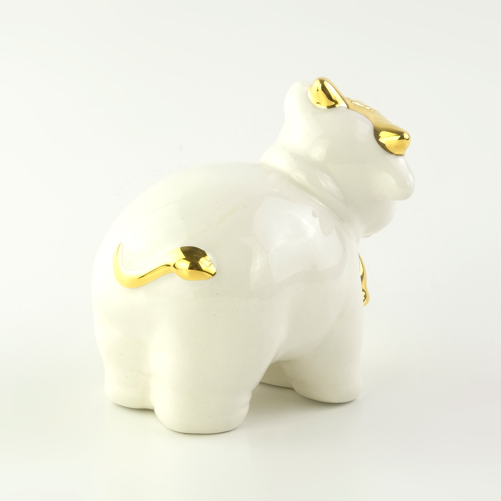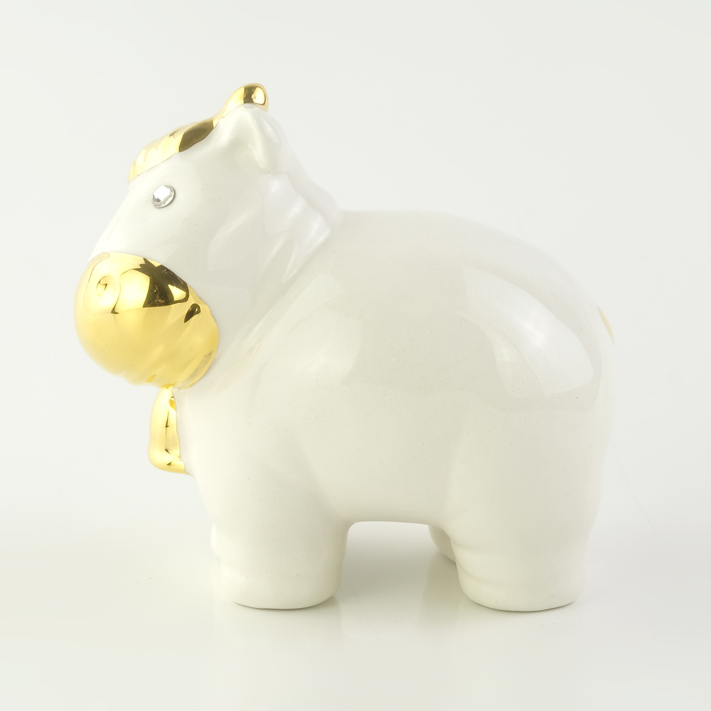 GIARDINO Figurine ippopotamo H7, 5 cm, ceramica, Colore Bianco, Decorazione oro, cristallo