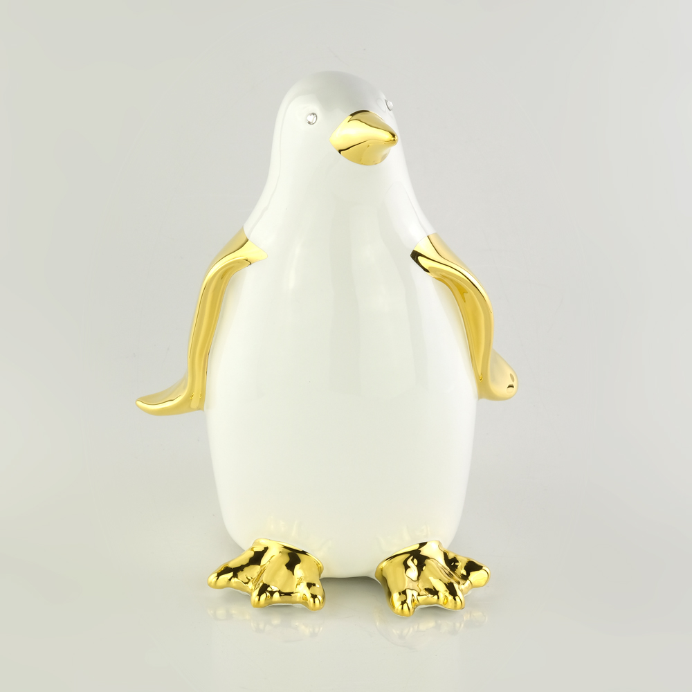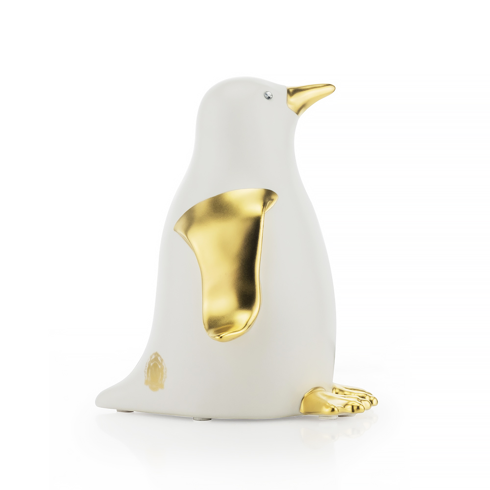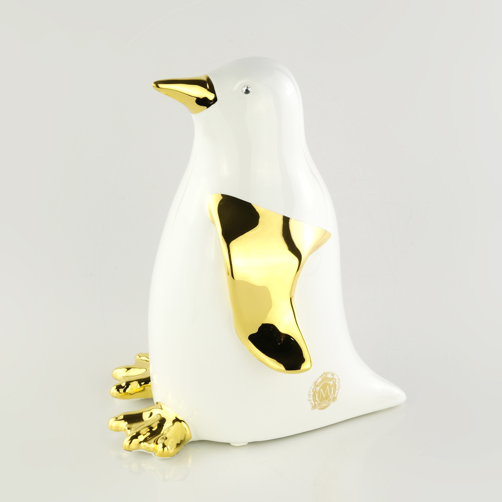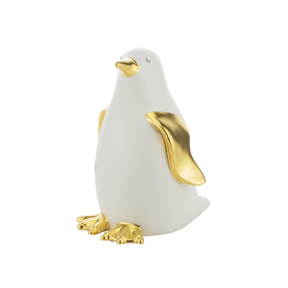 GIARDINO Pinguino figurine H17cm, ceramica, Colore Bianco, Decorazione oro