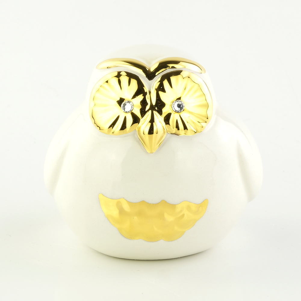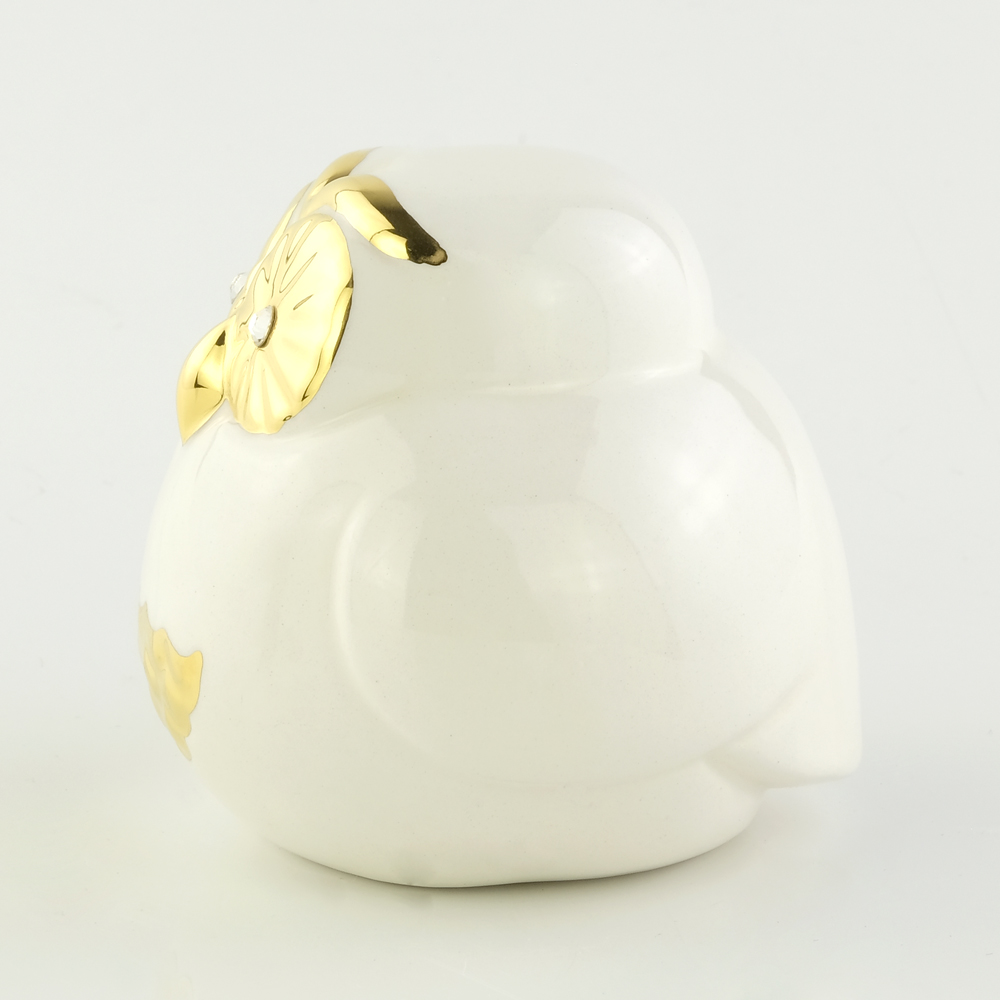 GIARDINO Statua del gufo H7, 5 cm, ceramica, Colore Bianco, Decorazione oro, cristallo