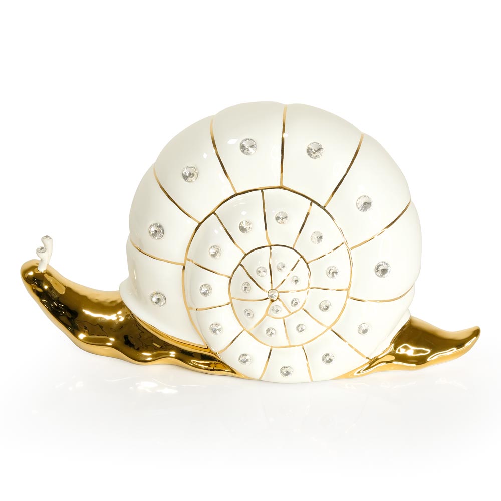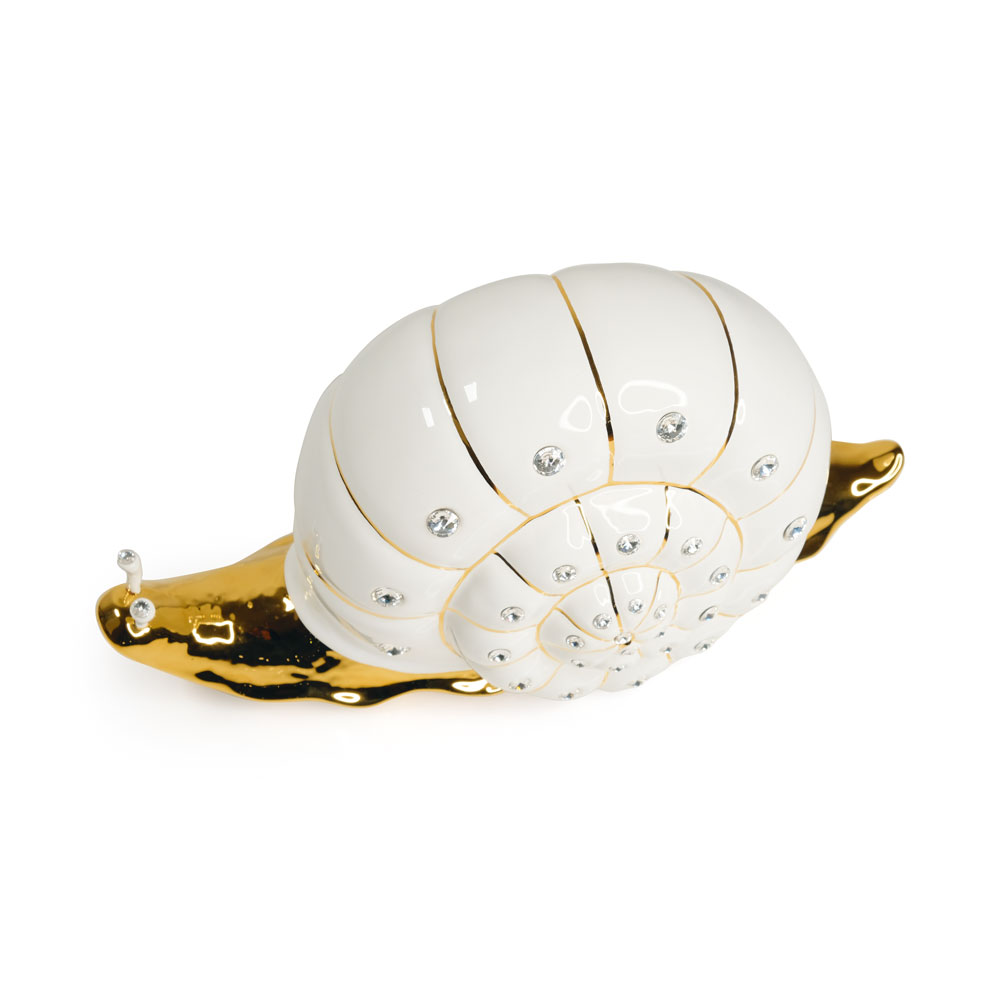 GIARDINO Statua di lumaca 34x13xh19 cm, ceramica, Colore Bianco, Decorazione oro, cristallo
