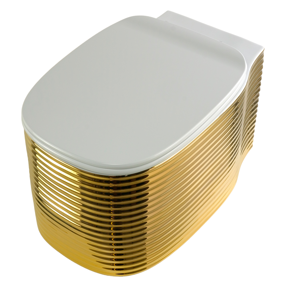 MARE Set WC appeso, ceramica bianca con decorazione oro, con coperchio / sedile, bianco / oro