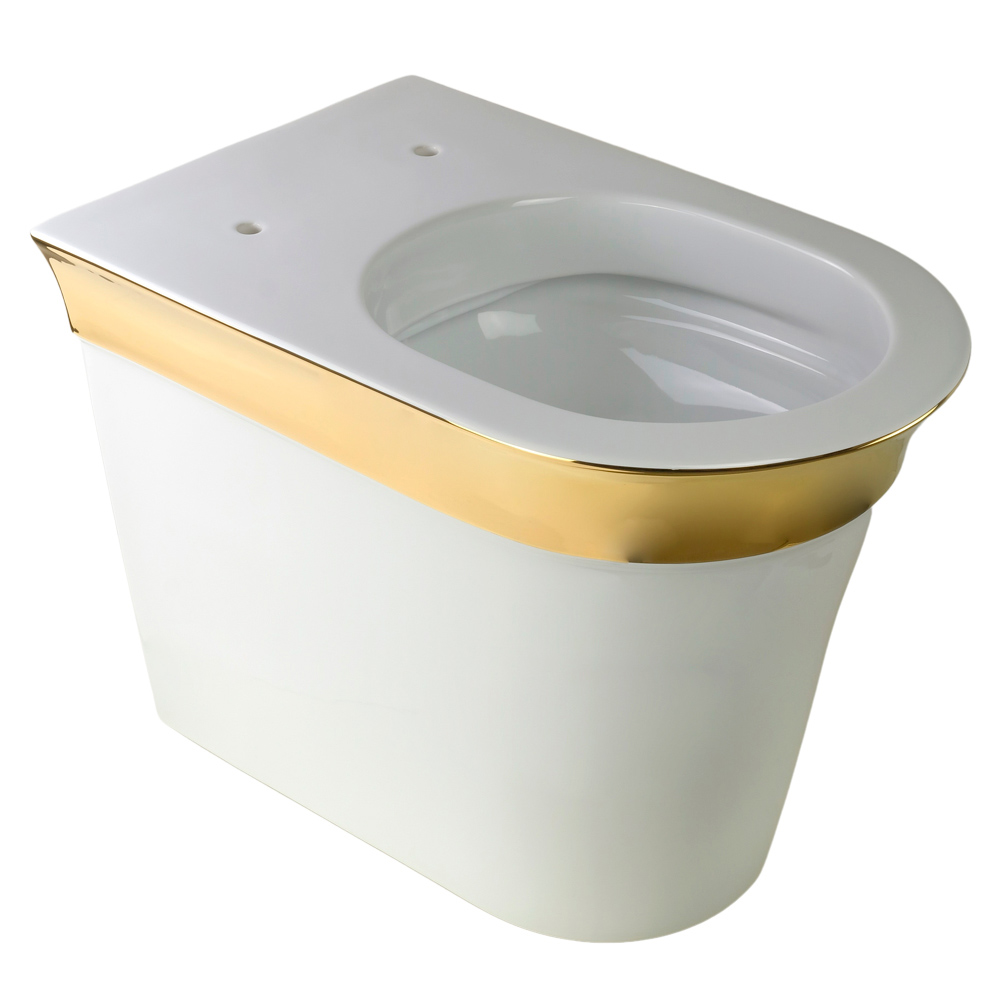 MONACO Set WC a pavimento, bianco con decorazione oro, con coperchio / sedile bianco / oro