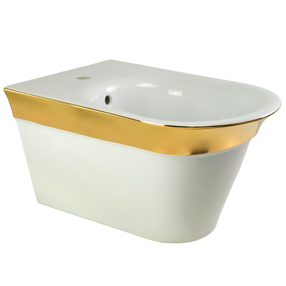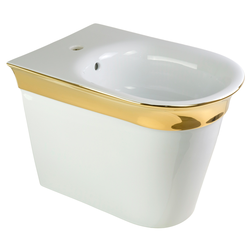 MONACO Bidet sospeso, ceramica bianca, Decorazioni d’oro