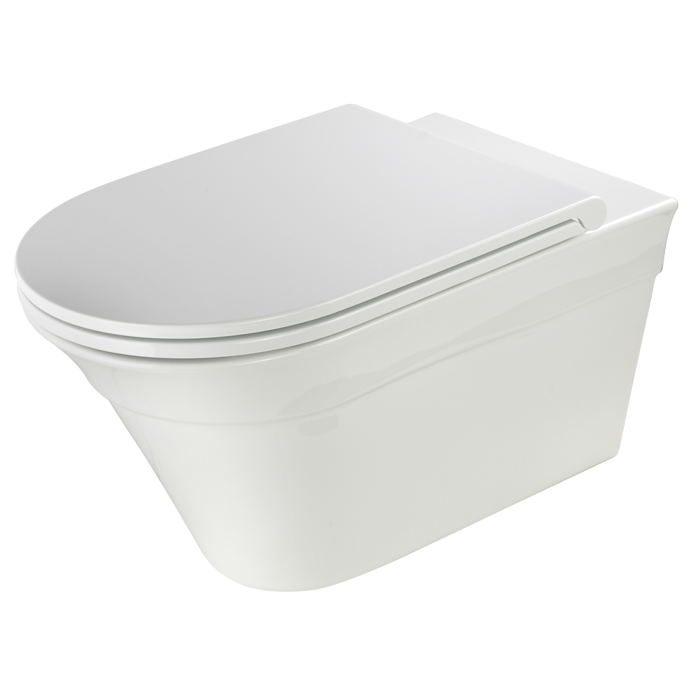MONACO Set WC appeso, ceramica bianca con coperchio / sedile, bianco / cromo