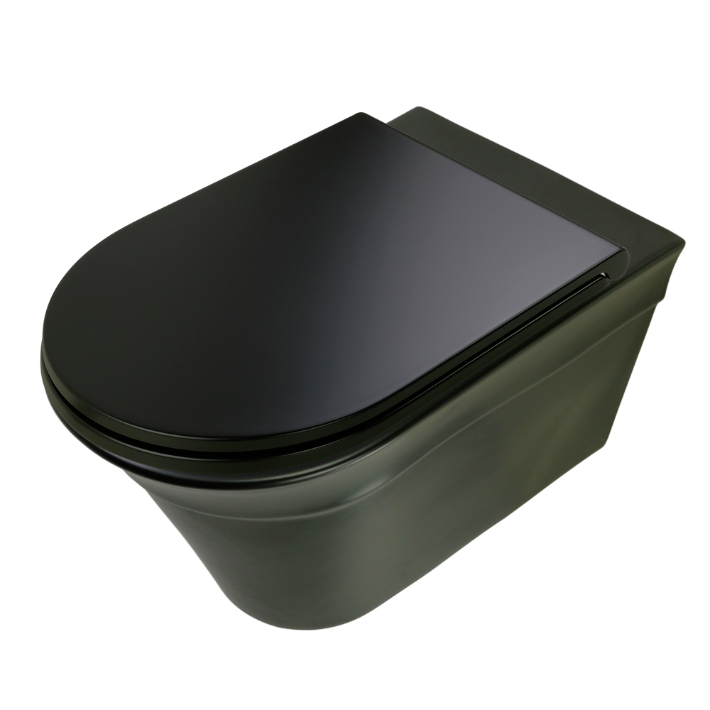 MONACO Set WC appeso, nero opaco con coperchio / sedile, nero opaco / cromo