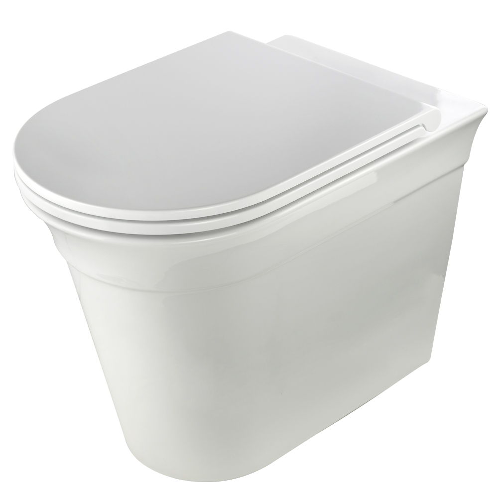 MONACO Set WC a pavimento, ceramica bianca con coperchio / sedile, bianco / cromo