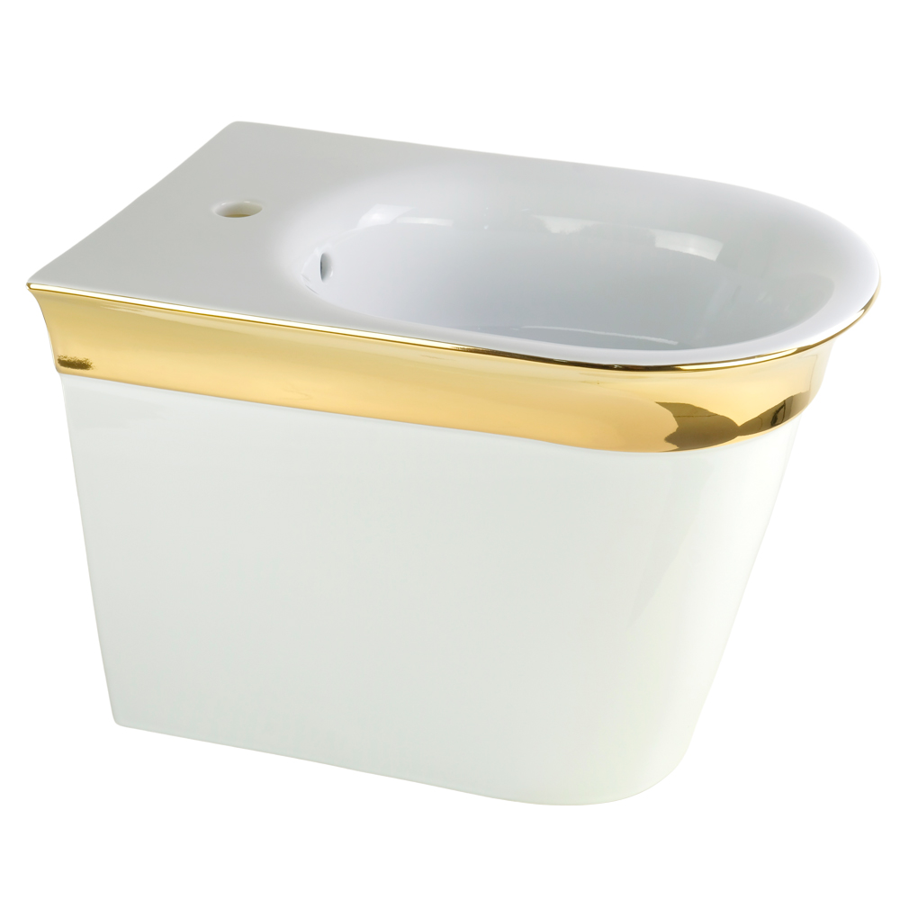 MONACO Bidet sospeso, ceramica bianca, Decorazioni d’oro