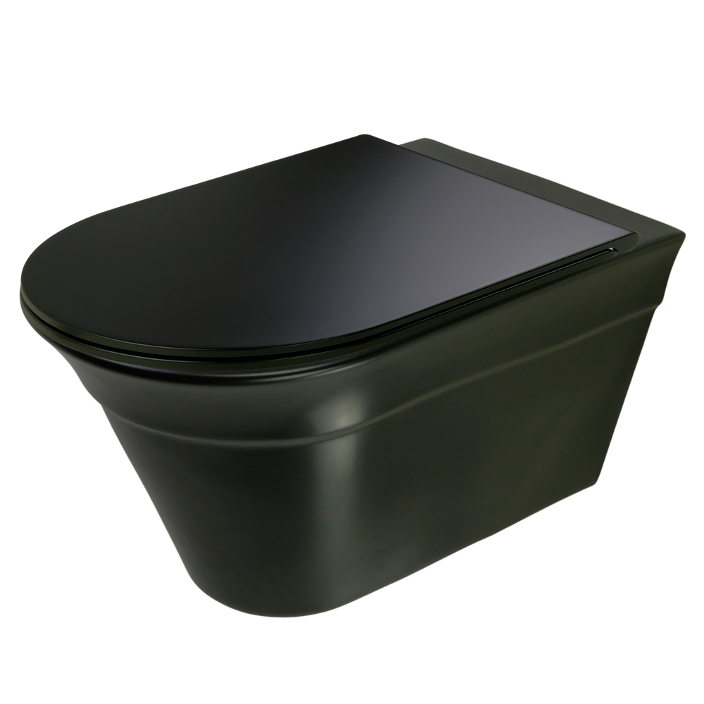 MONACO Set WC appeso, nero opaco con coperchio / sedile, nero opaco / cromo