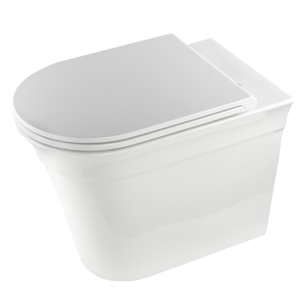 MONACO Set WC a pavimento, ceramica bianca con coperchio / sedile, bianco / cromo