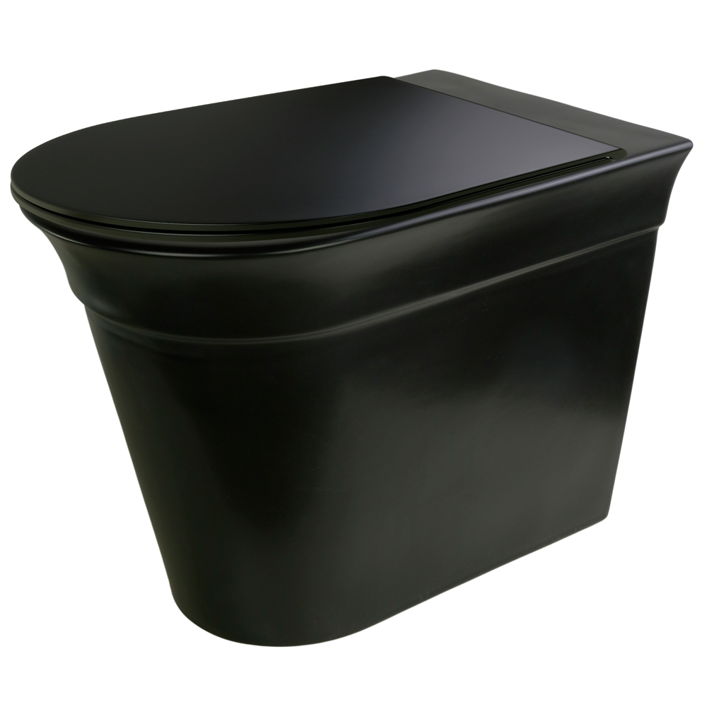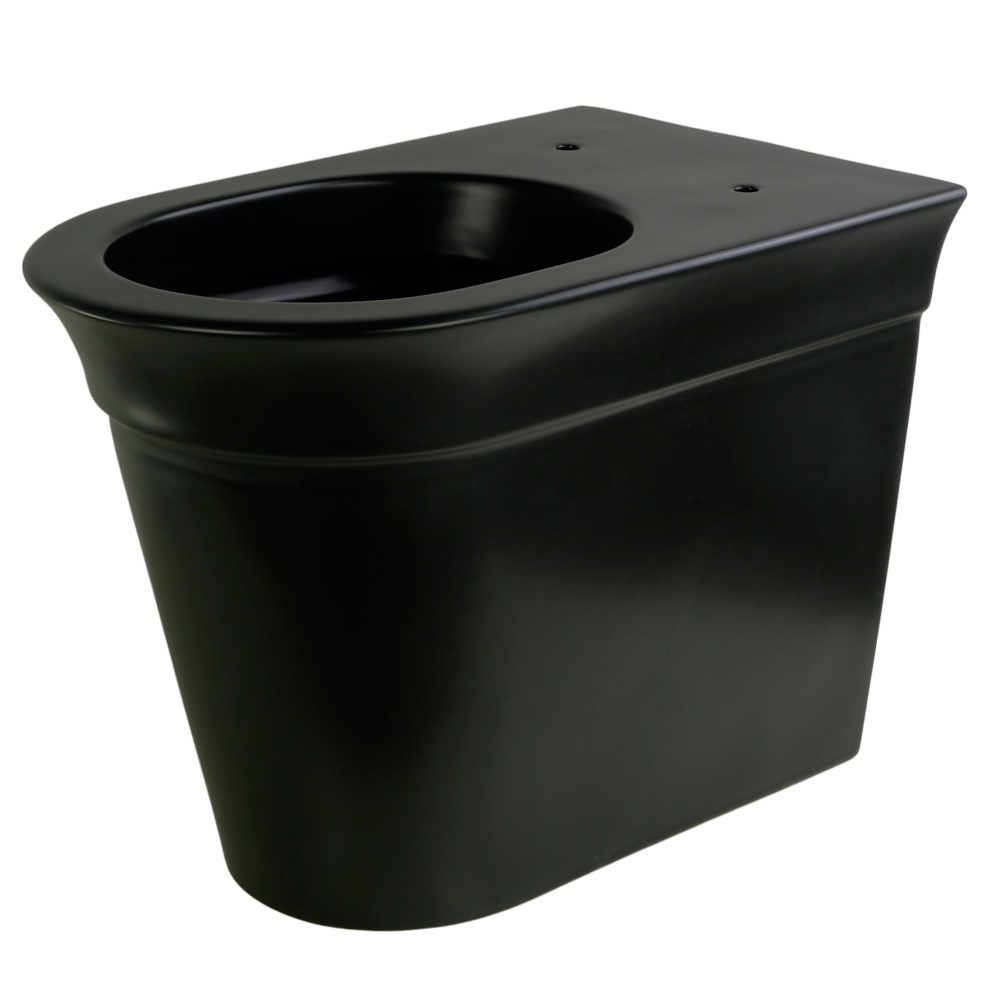 MONACO Set WC a pavimento, nero opaco con coperchio / sedile, nero opaco / cromato