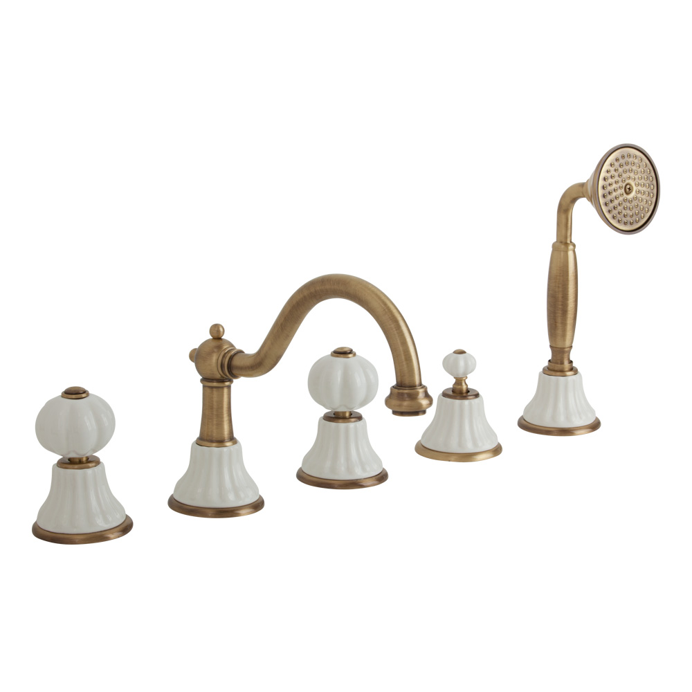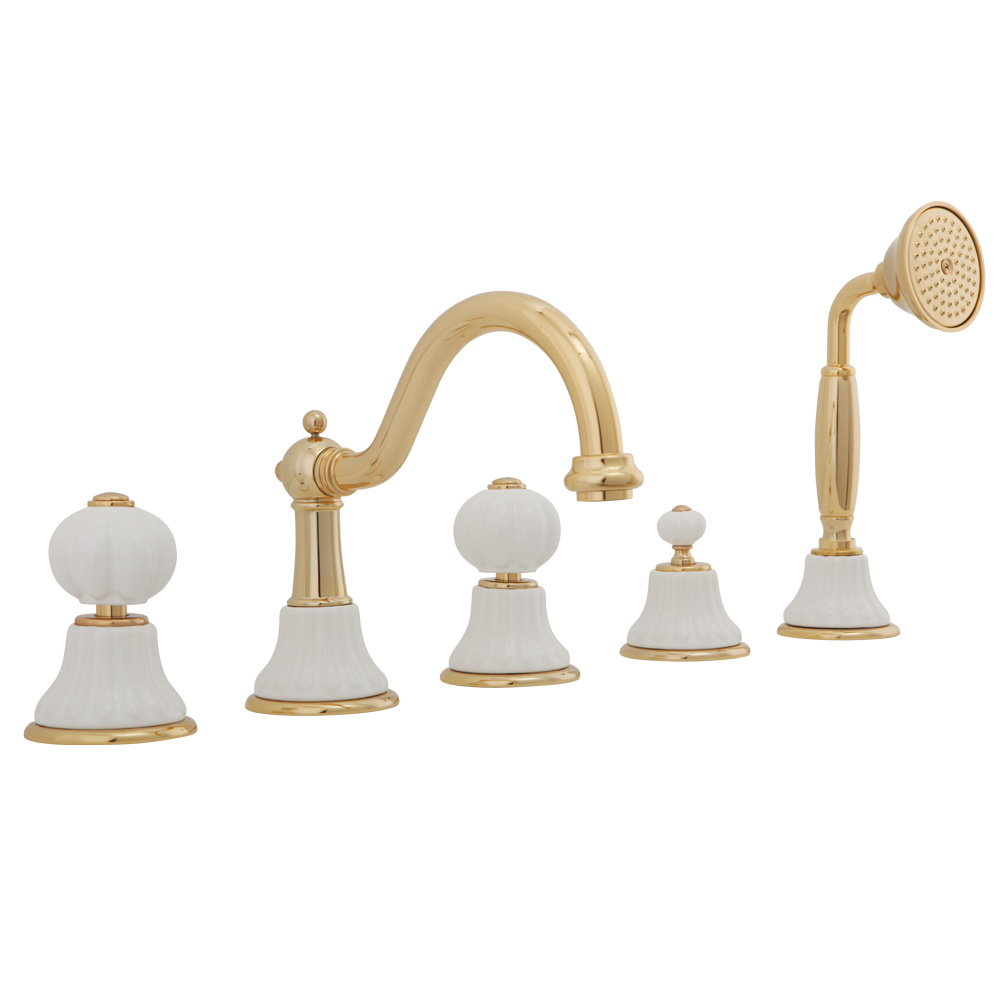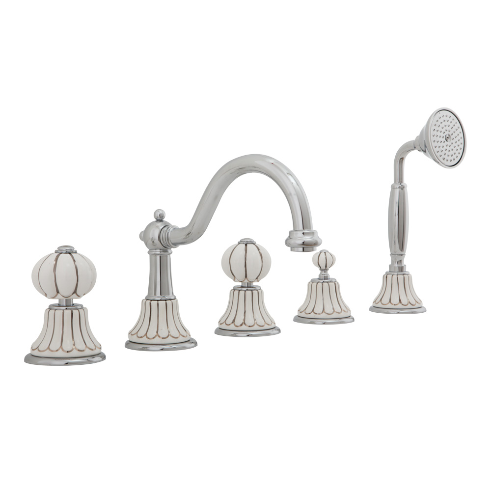 Batteria bordo vasca con doccia estraibile, Ceramica, Olivia