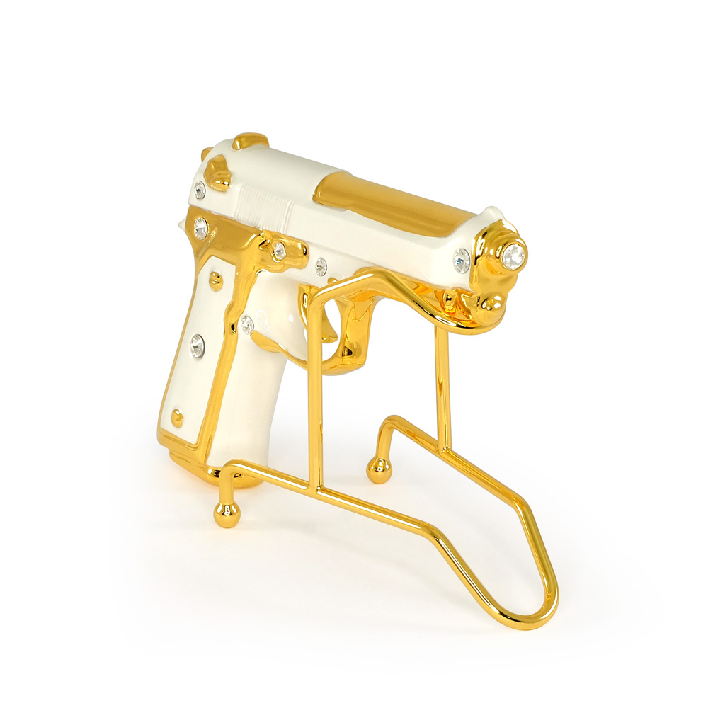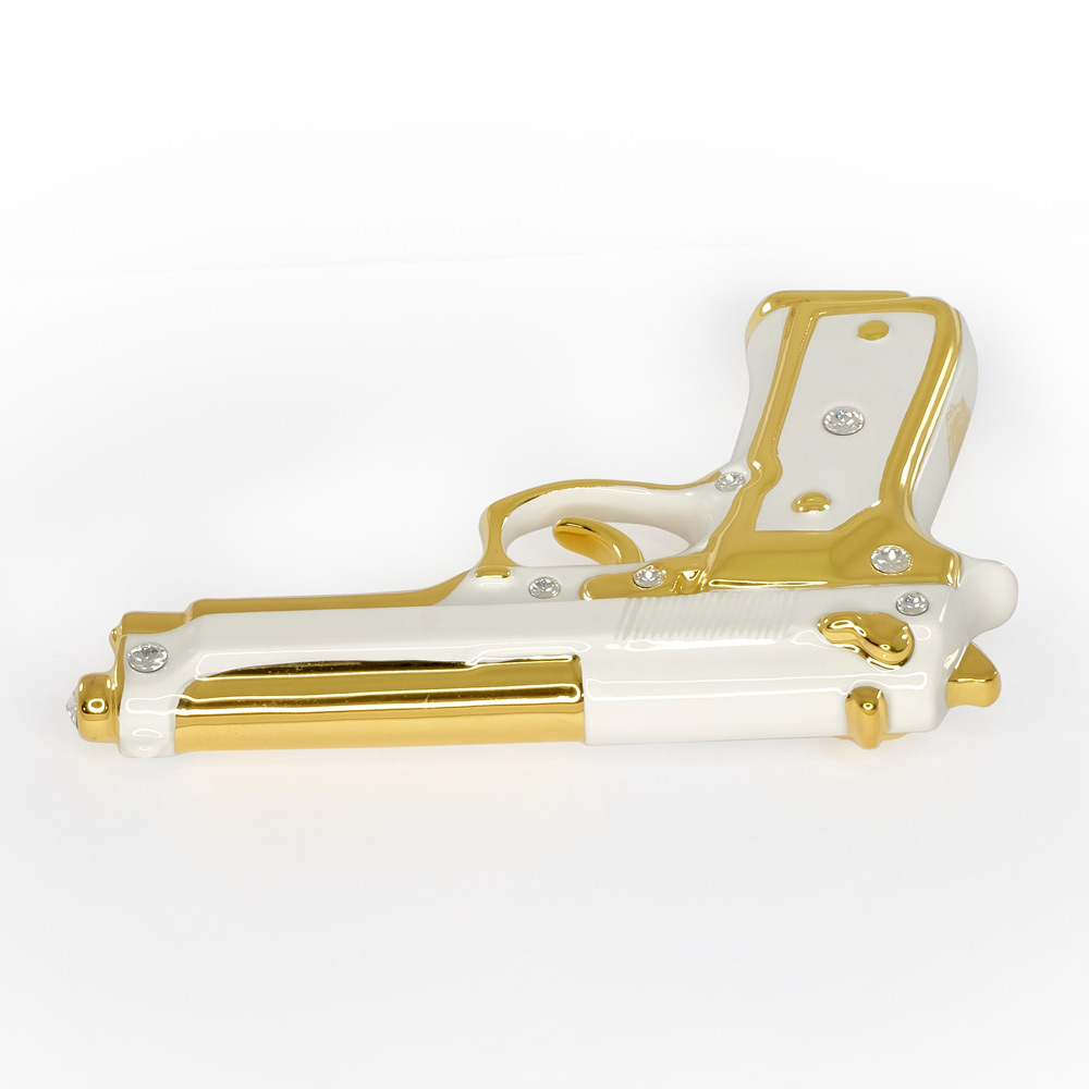 PISTOLETTO Pistola 20×13 cm (senza supporto), ceramica, Colore Bianco, Decorazione oro, cristallo