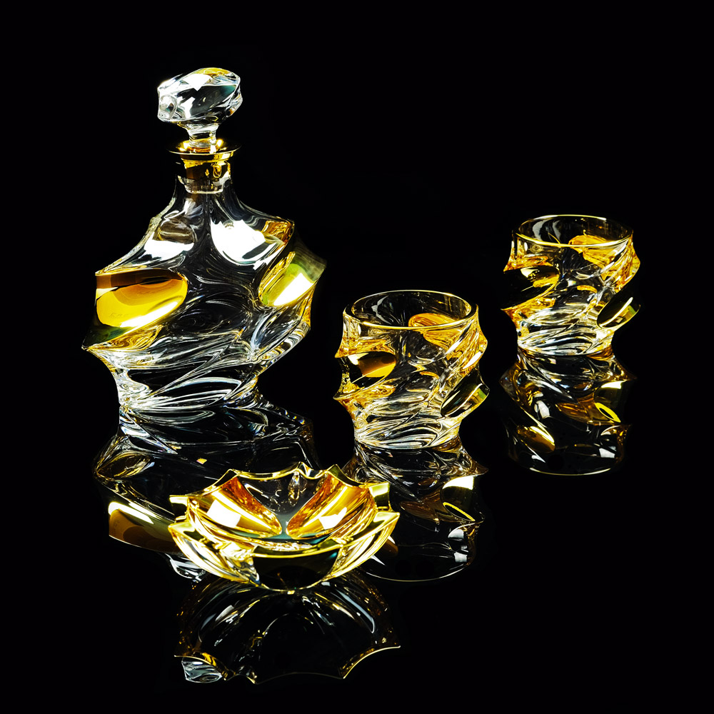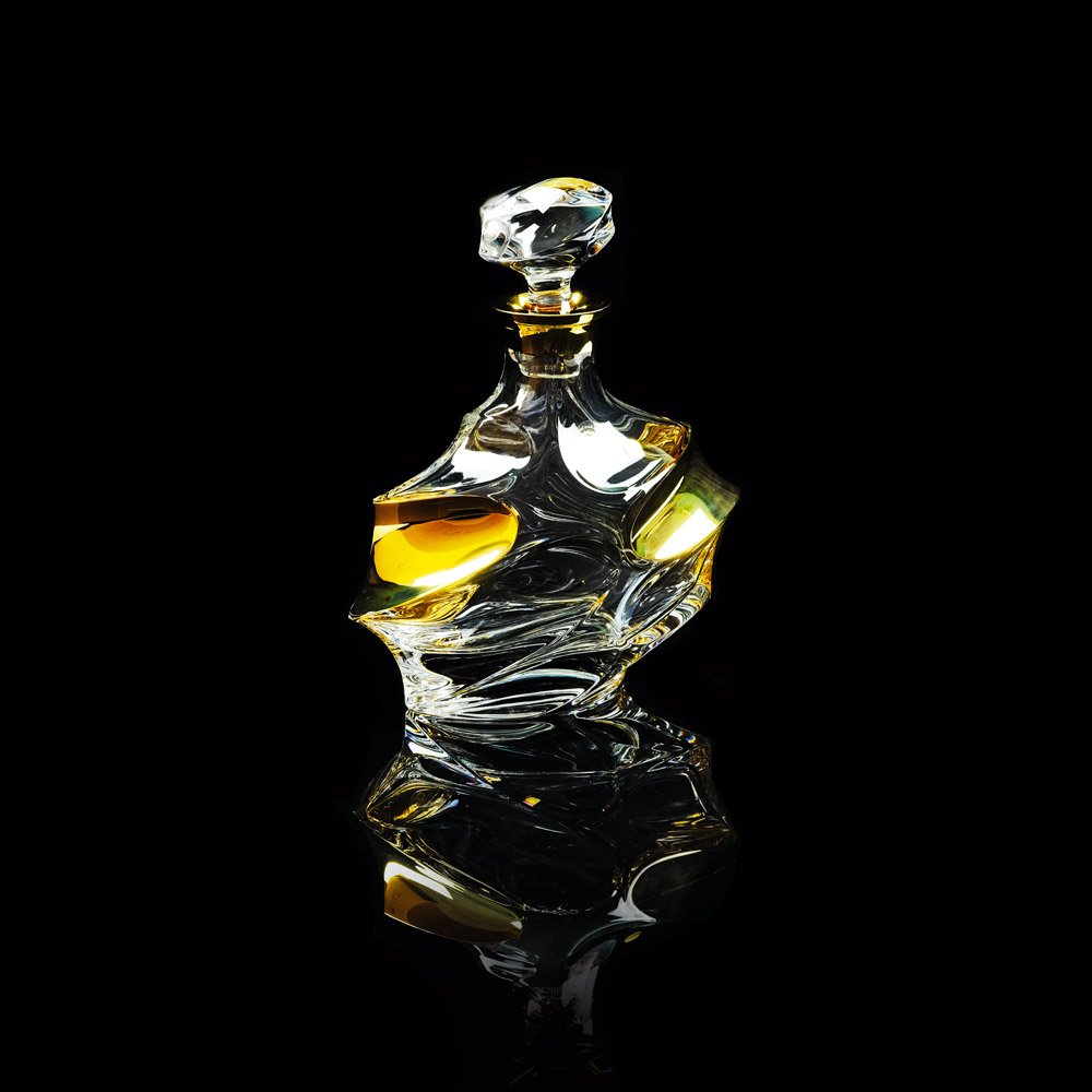 POCKER Decanter per whisky 0,85 l. H 24cm, cristallo / decorazione oro 24K