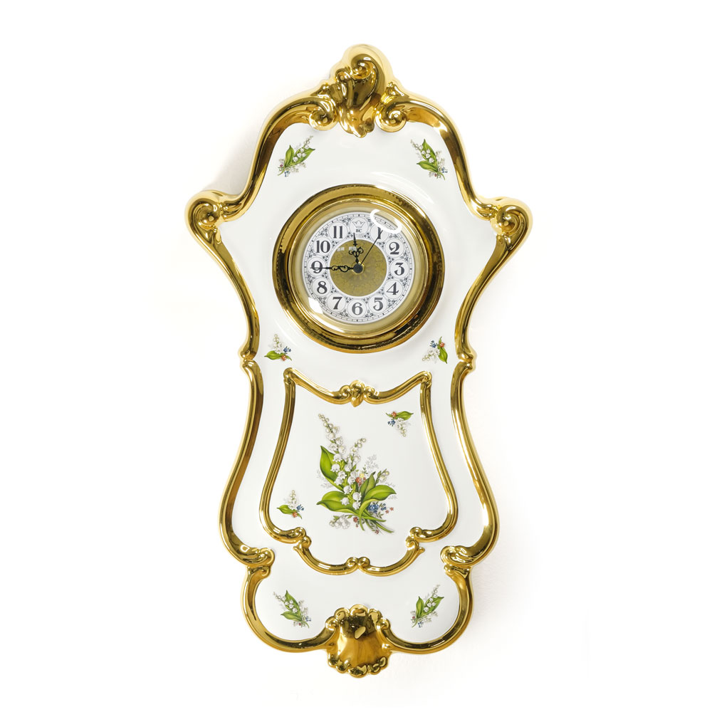 PRIMAVERA Orologio Da Parete 34x12xh63 cm, ceramica, Colore Bianco, Decorazione oro