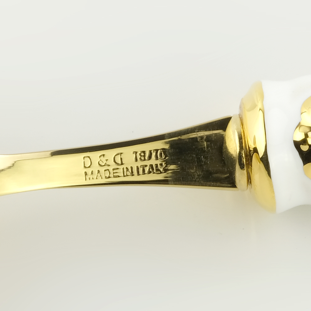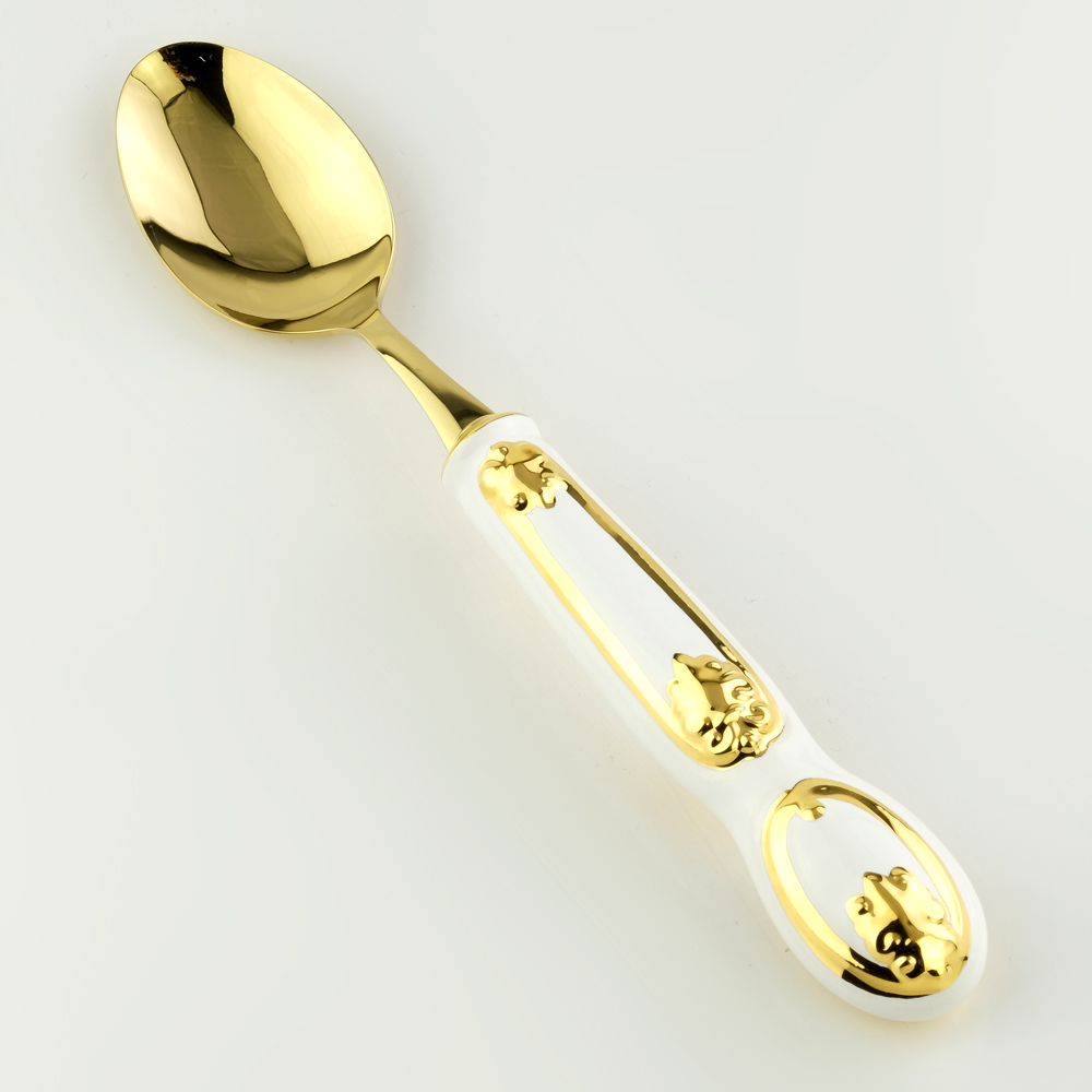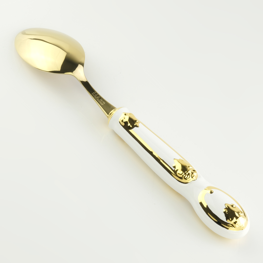 PRIMAVERA Cucchiaio con decorazione, ceramica / acciaio inox, Colore Bianco, Decorazione oro