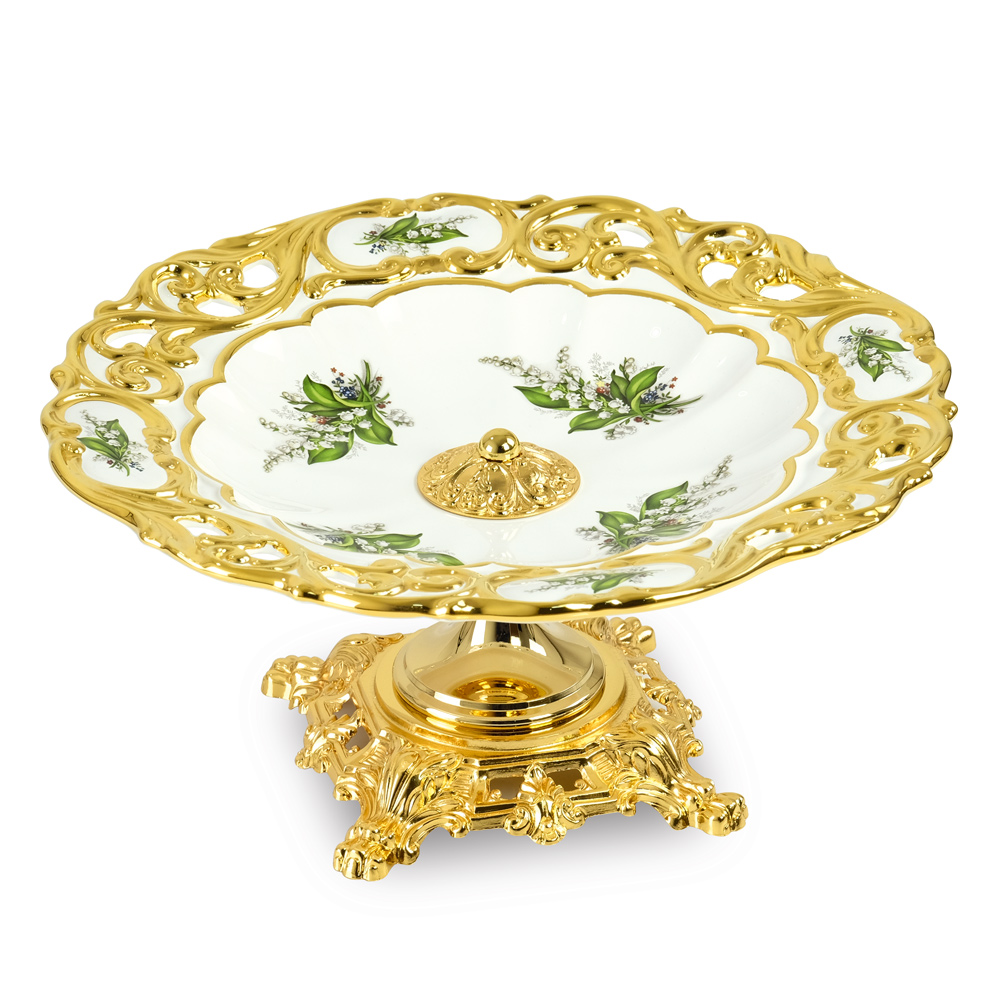 PRIMAVERA Piatto 33,5×33,5 x H 16cm, ceramica, Colore Bianco, Decorazione oro