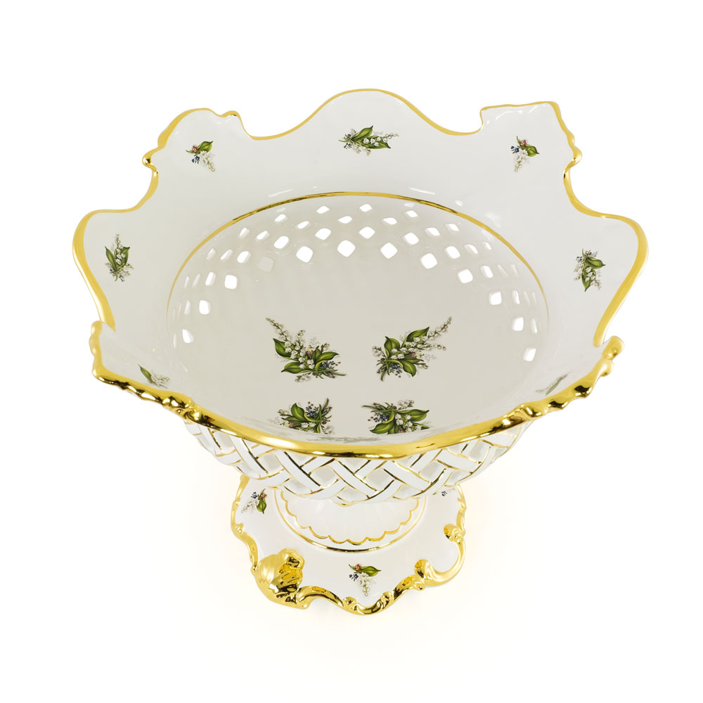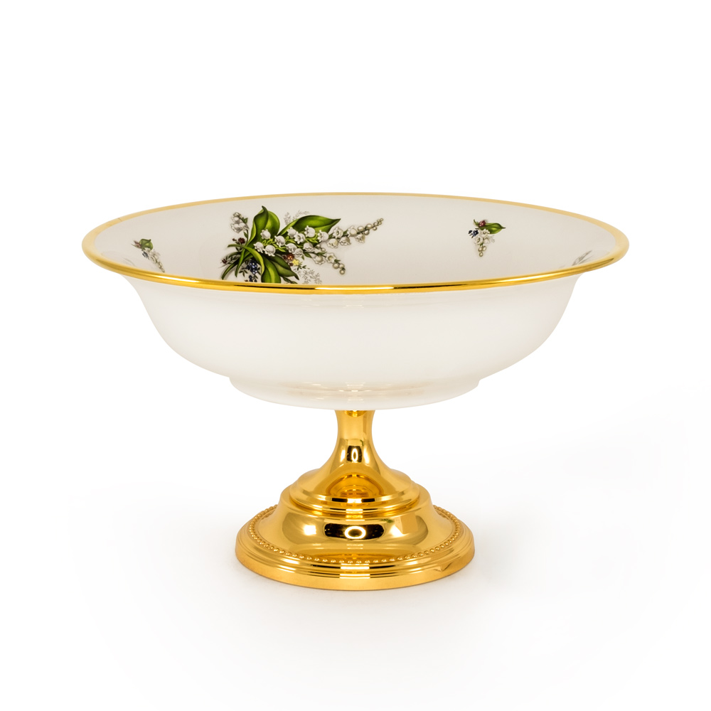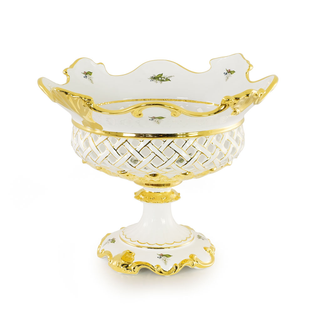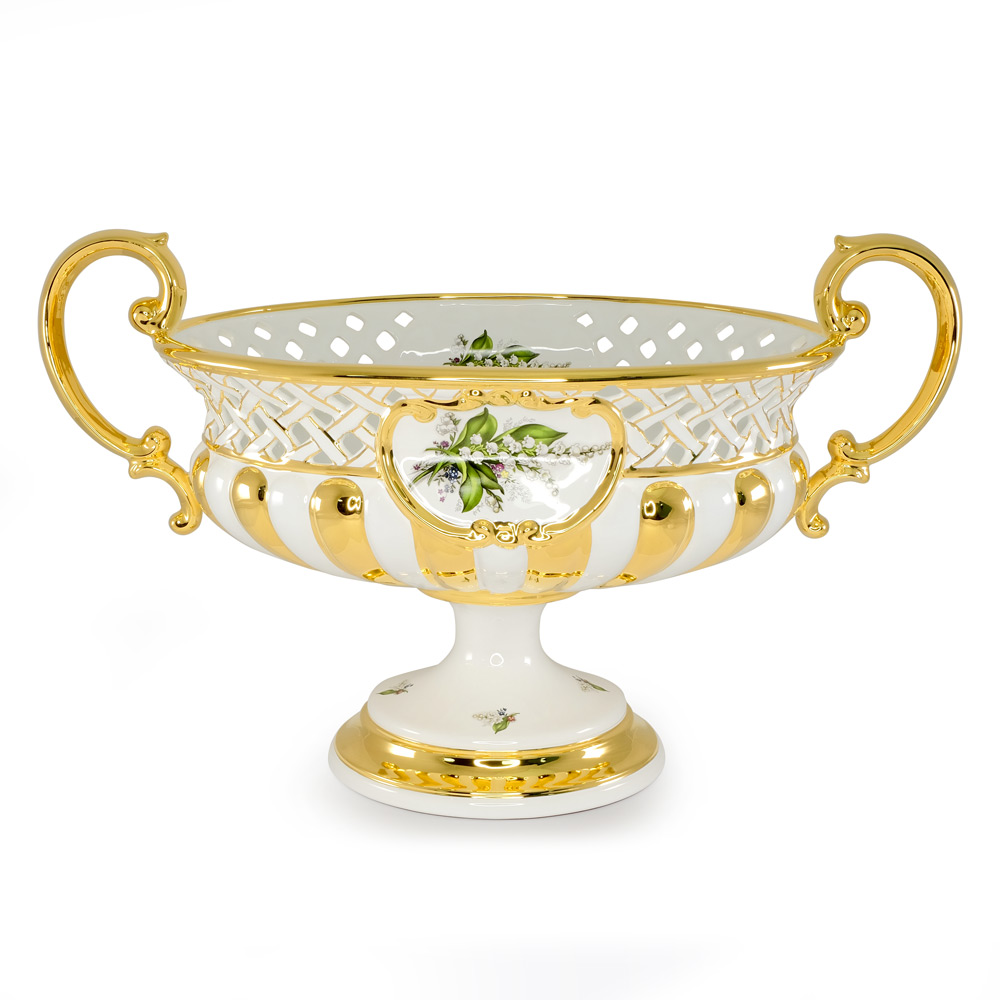 PRIMAVERA Vaso da tavolo 44, 5x42xh34 cm, ceramica, Colore Bianco, Decorazione oro