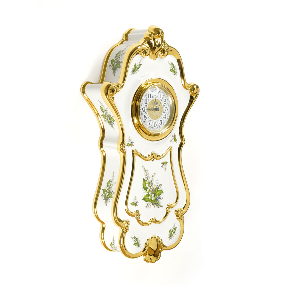 PRIMAVERA Orologio Da Parete 34x12xh63 cm, ceramica, Colore Bianco, Decorazione oro