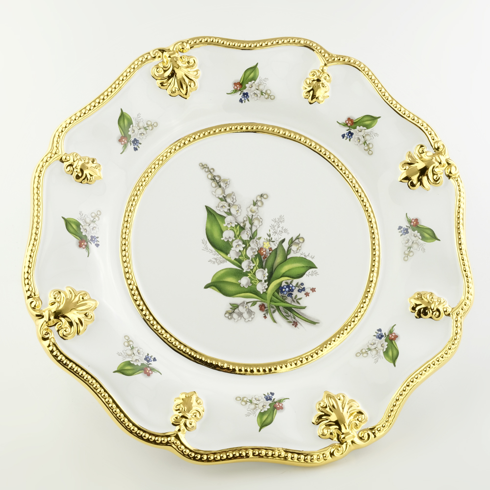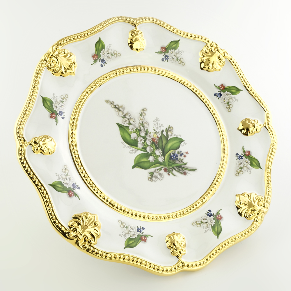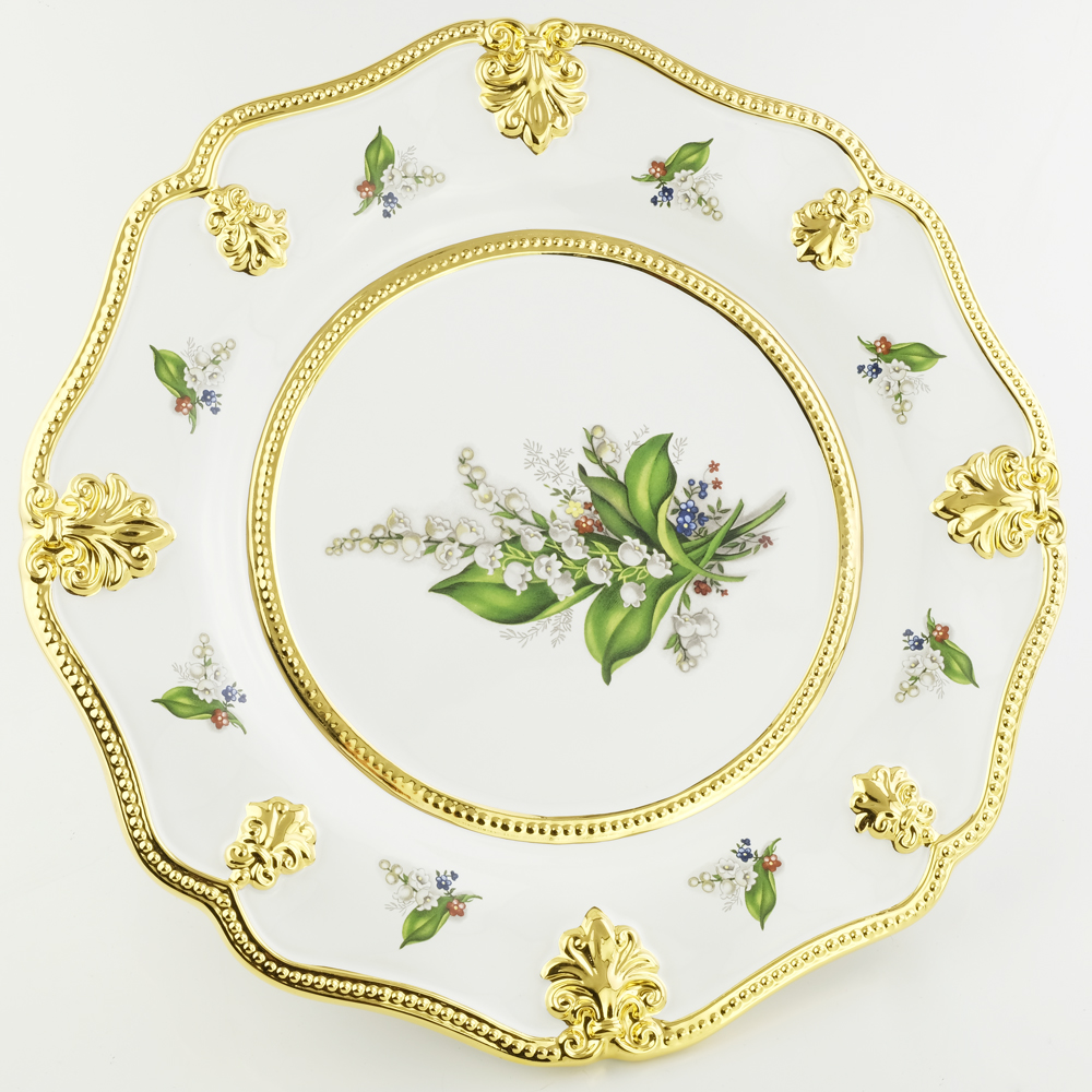 PRIMAVERA Piatto con decorazione dia.23,5 cm, ceramica, Colore Bianco, Decorazione oro