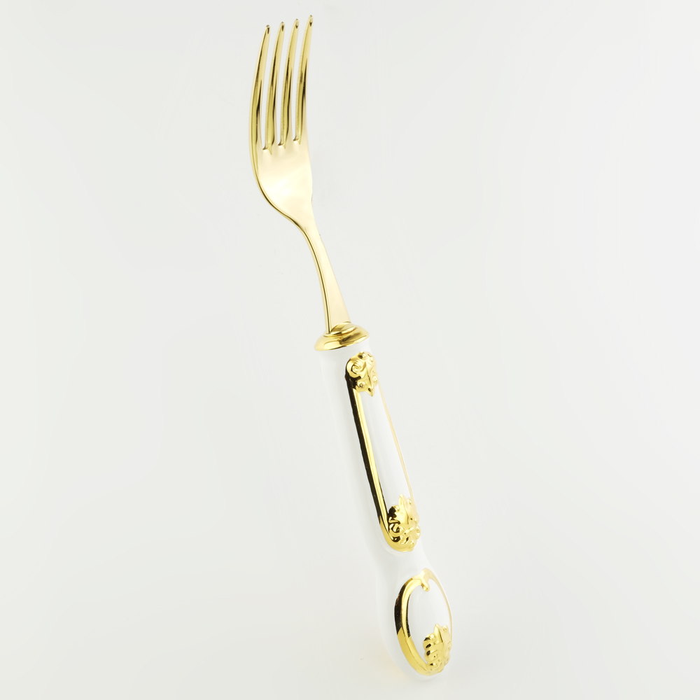 PRIMAVERA Forcella con decorazione, ceramica / acciaio inox, Colore Bianco, Decorazione oro