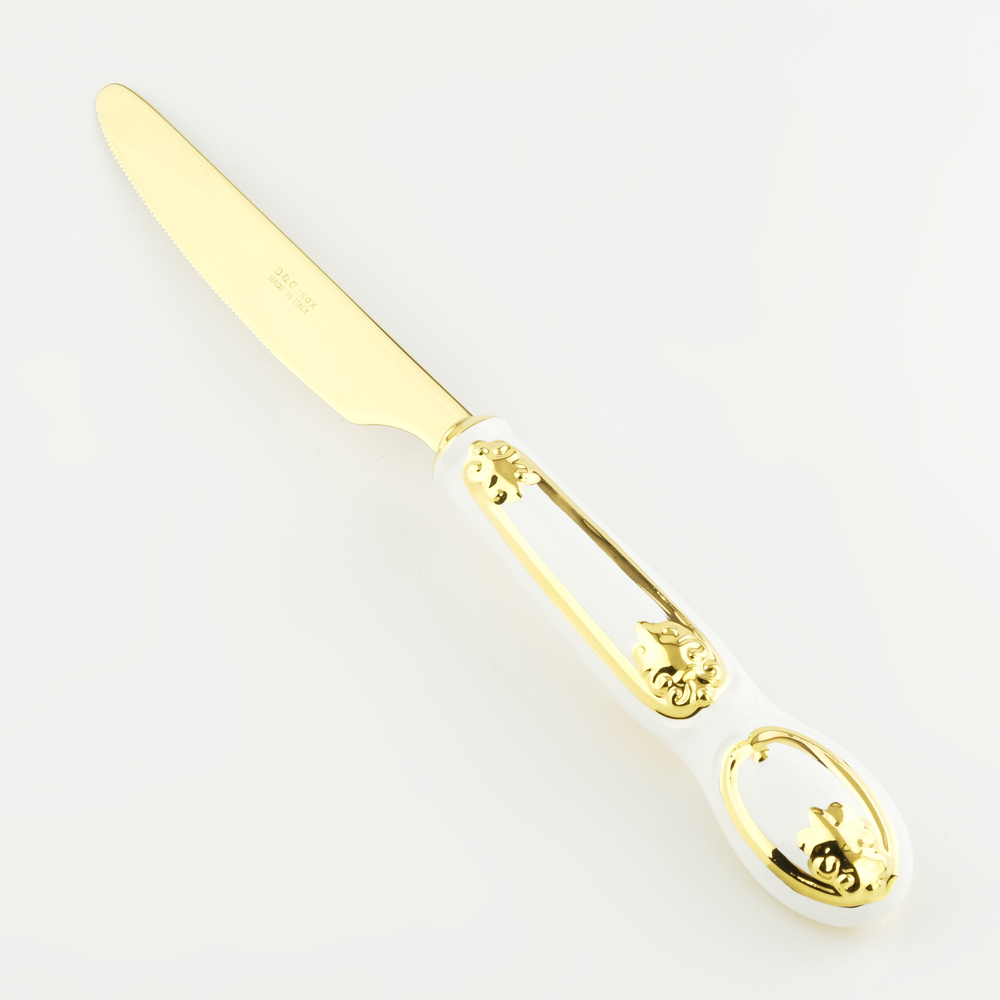 PRIMAVERA Coltello da tavola con decorazione, ceramica / acciaio inox, Colore Bianco, Decorazione oro