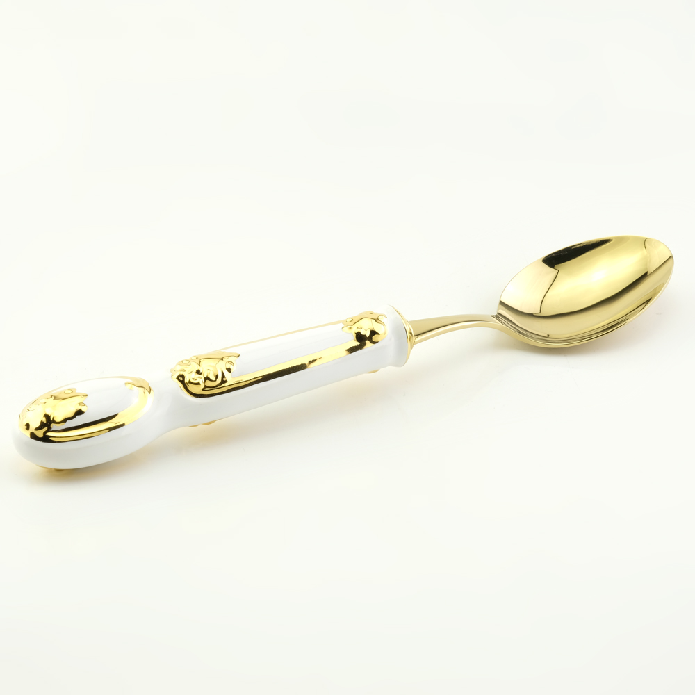 PRIMAVERA Cucchiaio con decorazione, ceramica / acciaio inox, Colore Bianco, Decorazione oro