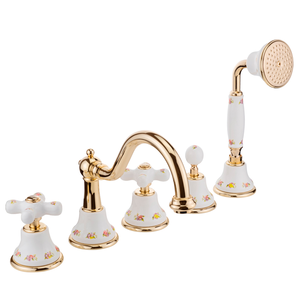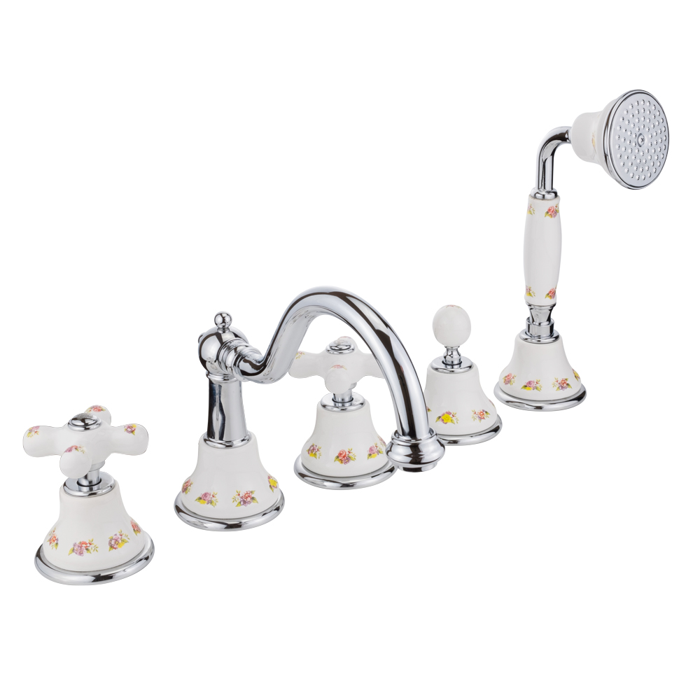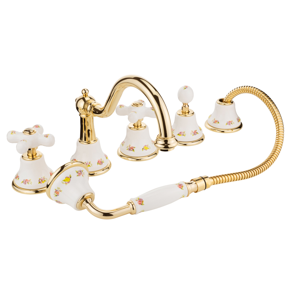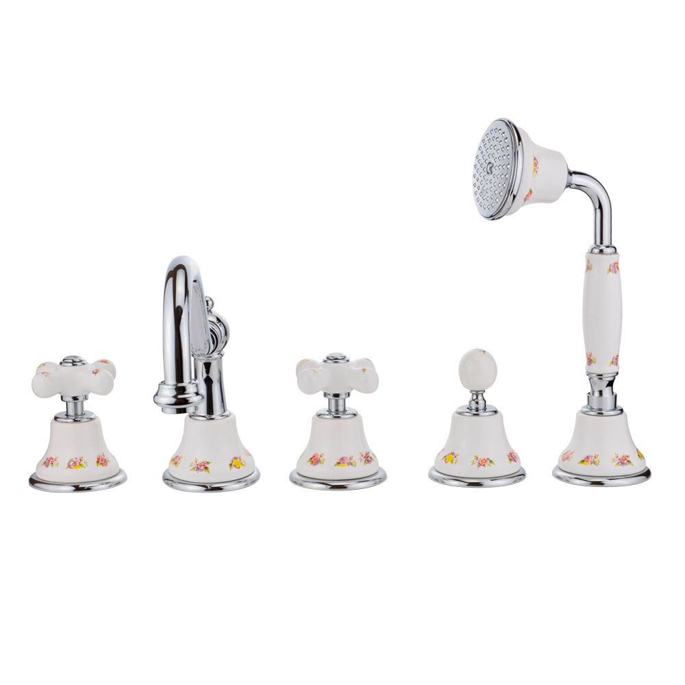 Gruppo vasca esterno con flessibile cm 150 e doccia duplex, ceramica