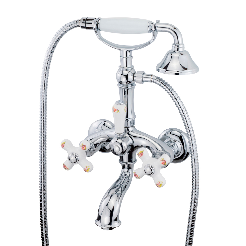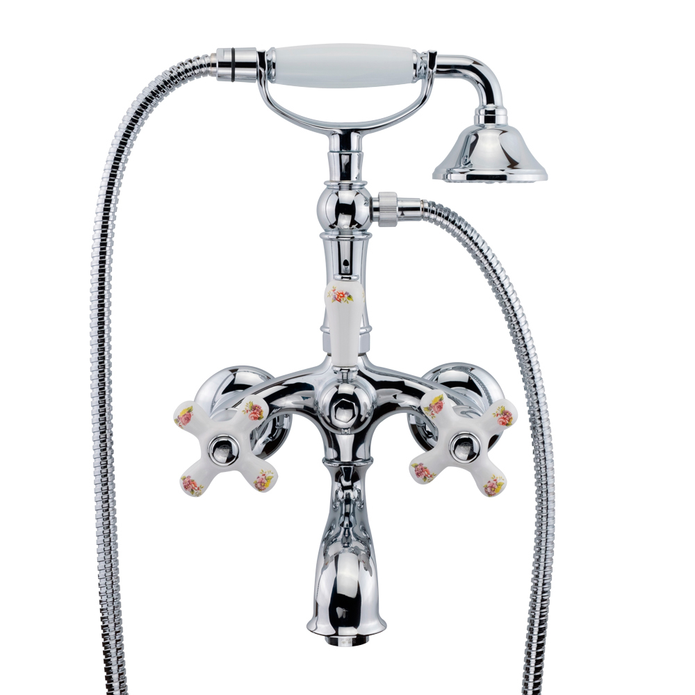 Gruppo vasca esterno con flessibile cm 150 e doccia duplex, ceramica
