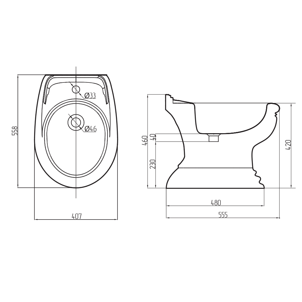 Vaso monoblocco con cassetta con leva discarico, Milady