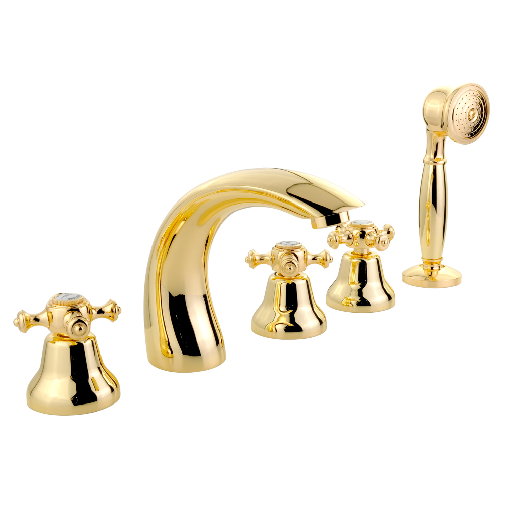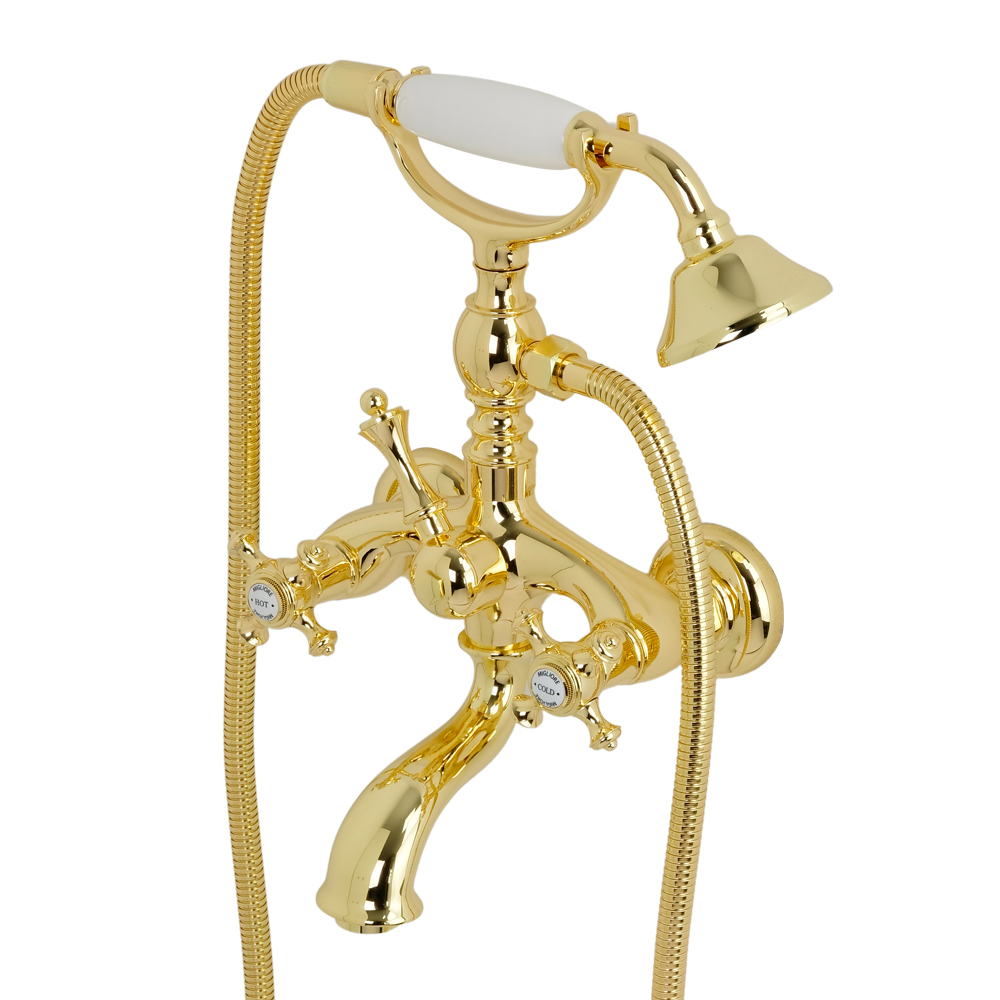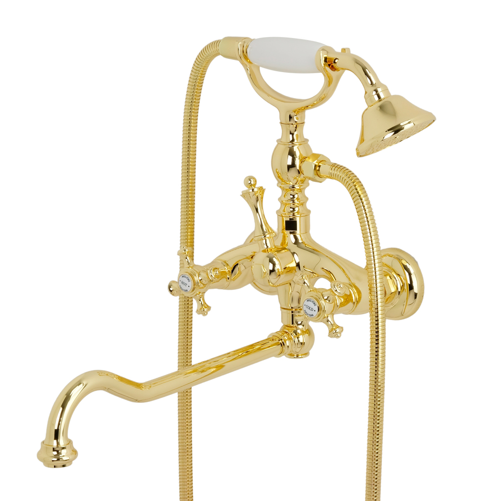 Gruppo vasca esterno con flessibile cm 150 e doccia duplex, bocca girevole