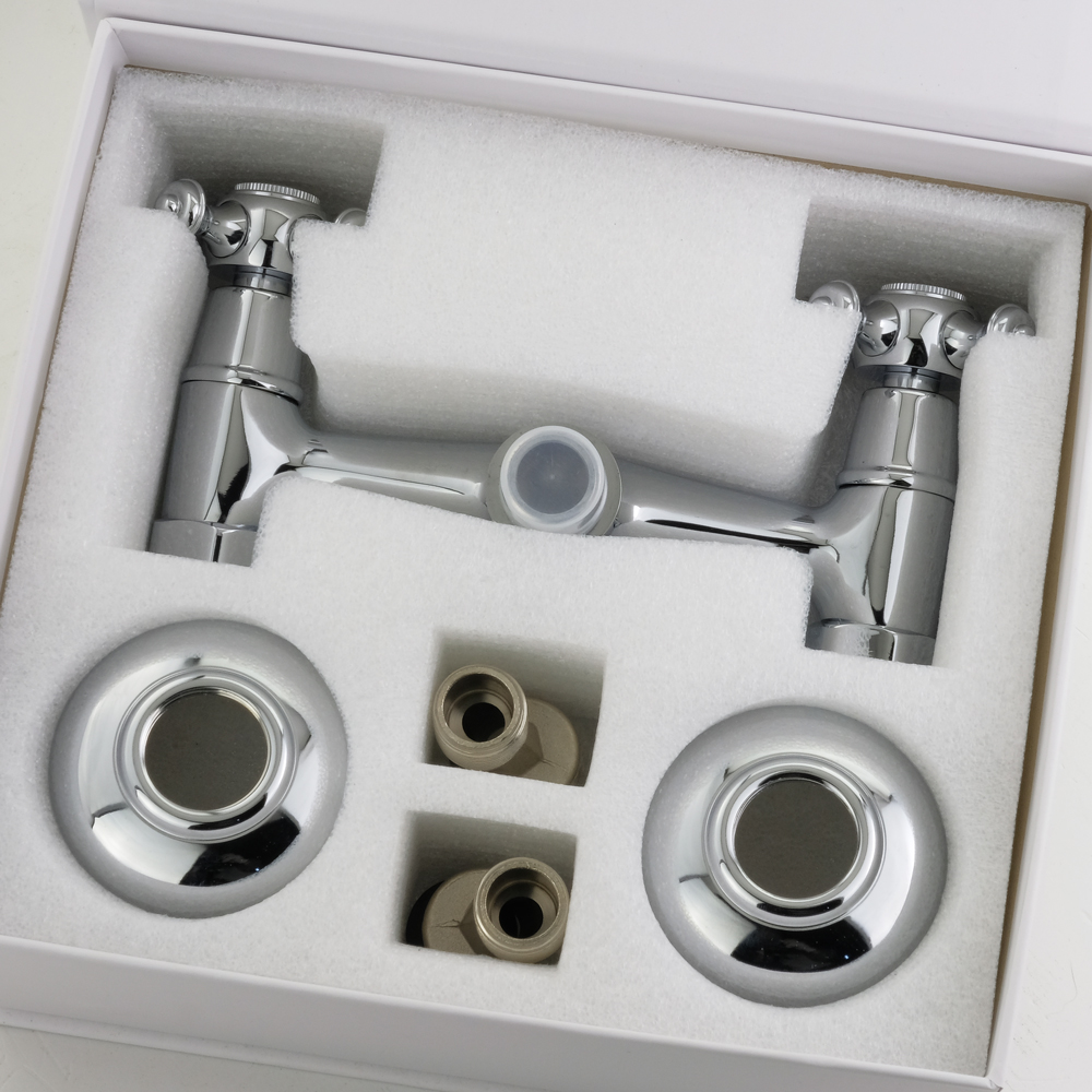 Gruppo vasca esterno con flessibile cm 150 e doccia duplex, termostato
