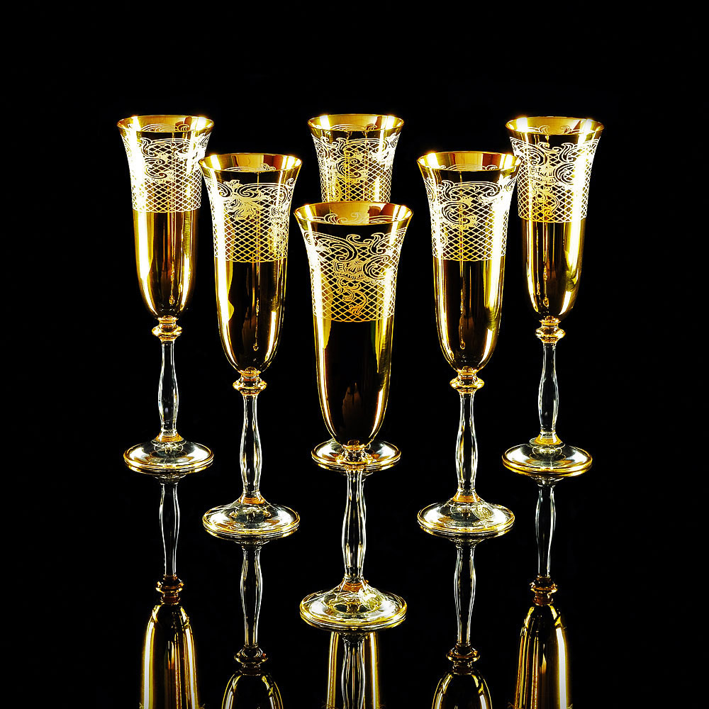 VITTORIA Bicchiere di champagne 200ml, set di 6 pezzi, cristallo / decor oro 24K