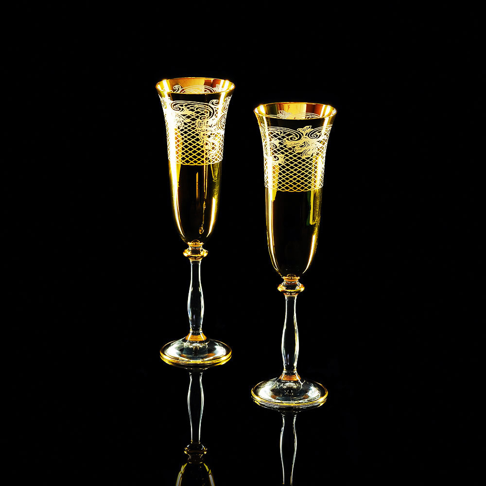 VITTORIA Bicchiere di champagne 200ml, set di 2 pezzi, cristallo / decor oro 24K