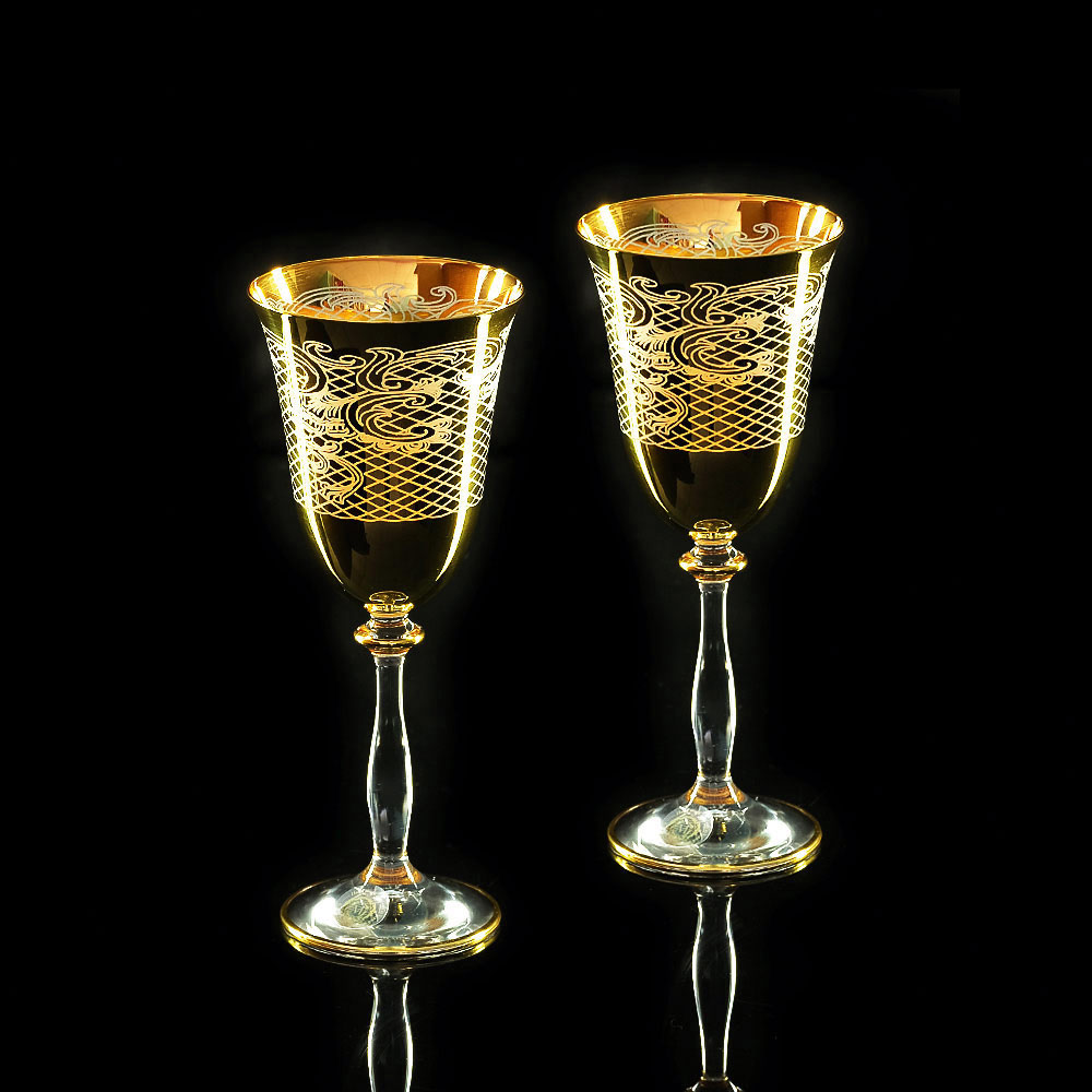 VITTORIA Bicchiere da vino/acqua da 250 ml, set da 2 pezzi, cristallo / decorazione oro 24 carati