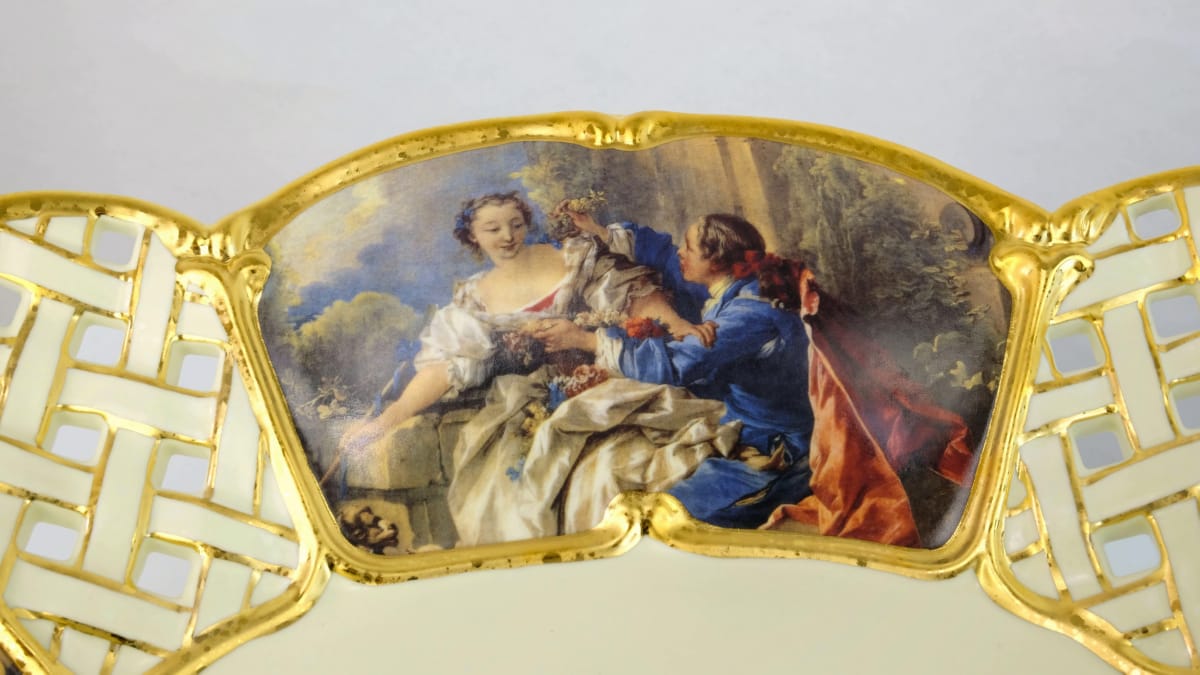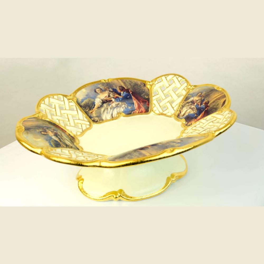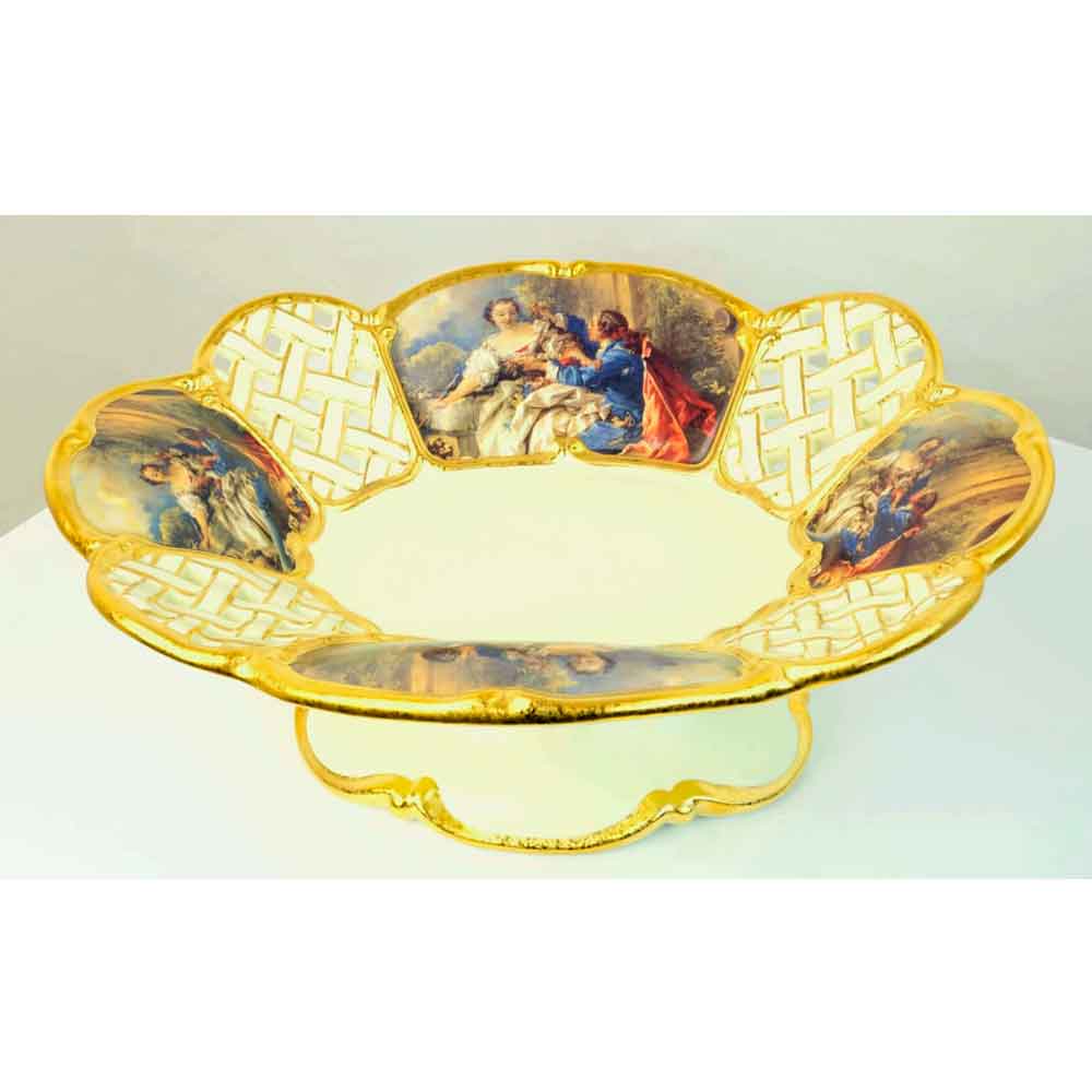 BAROQUE Piatto su una gamba 41x32xh16 cm., ceramica, Colore Crema, decorazione oro