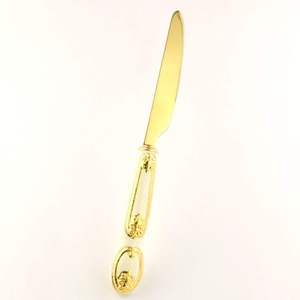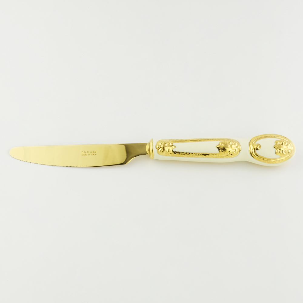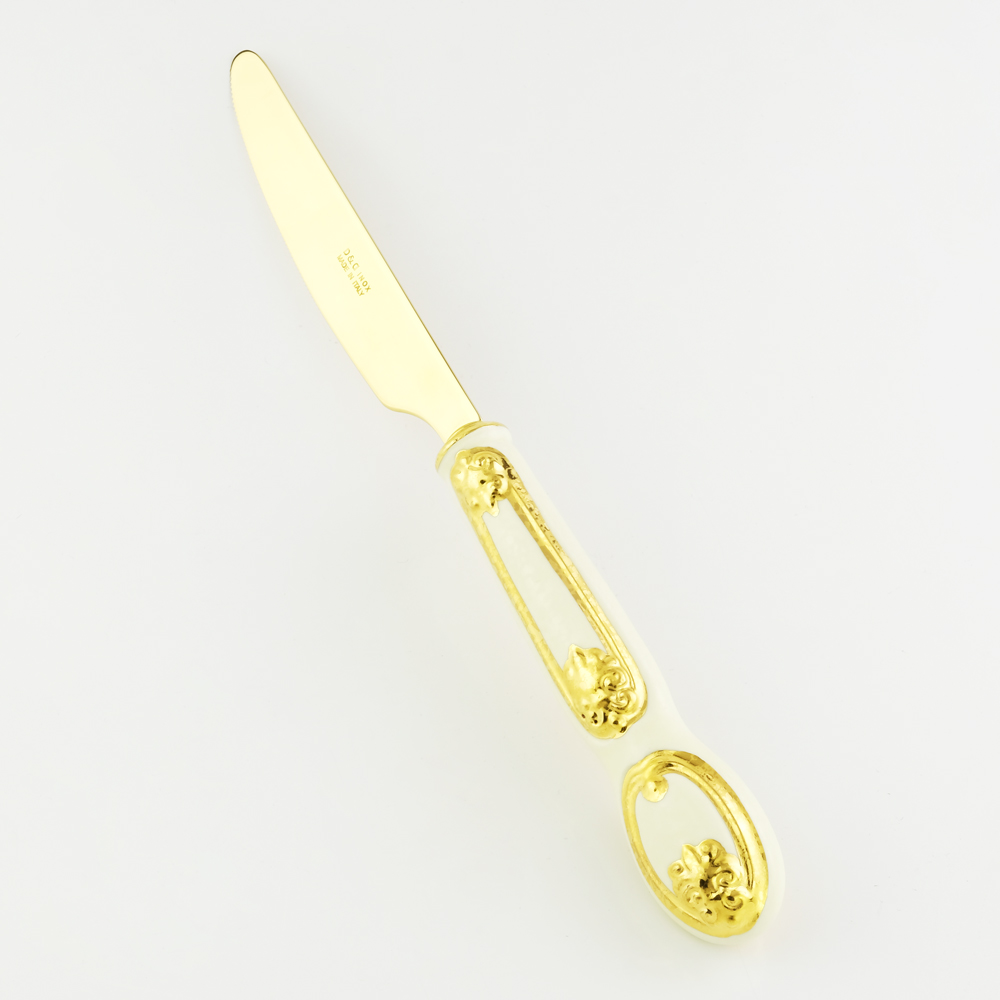 BAROQUE Table knife with decor, ceramic/stainless steel, cream color, decor gold