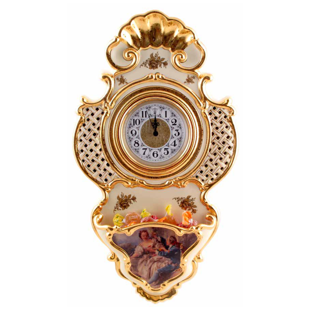 BAROQUE Часы настенные L46хН80 см, керамика, цвет кремовый, декор золото