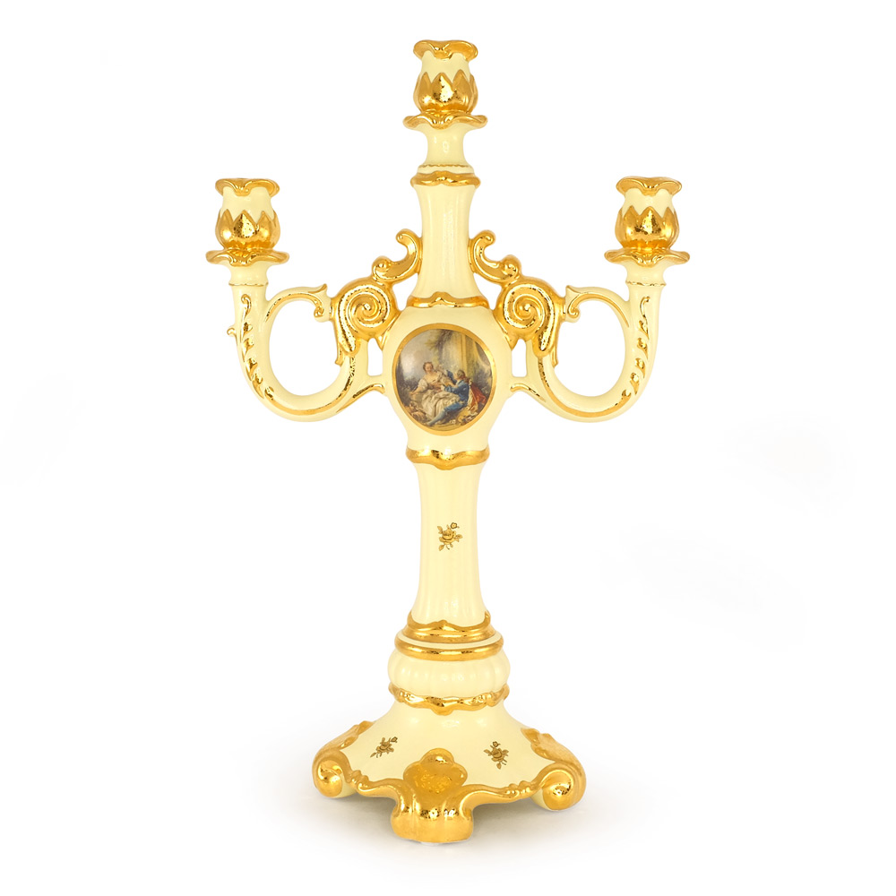 BAROQUE Подсвечник на 3 свечи L34хP20хH53 см, керамика, цвет кремовый, декор золото