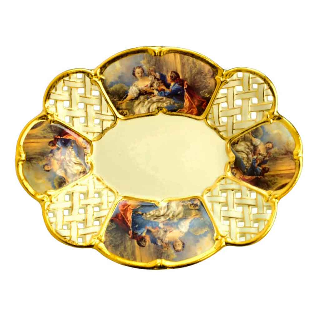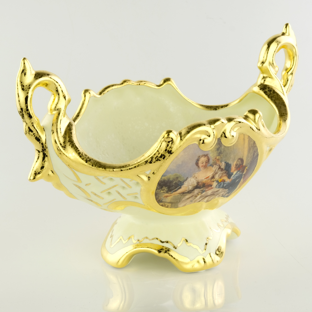 BAROQUE Блюдо на ножке 41х32хН16 см., керамика, цвет кремовый, декор золото