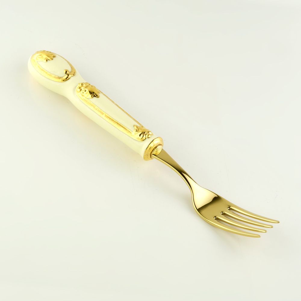 BAROQUE Вилка с декором, керамика/нерж, цвет кремовый, декор золото
