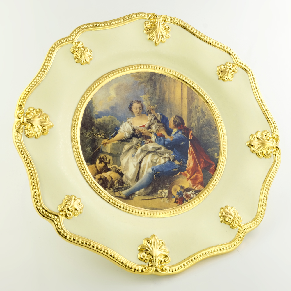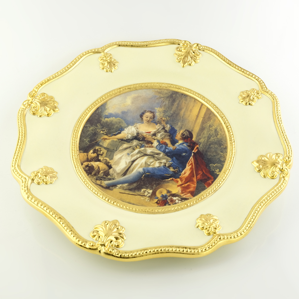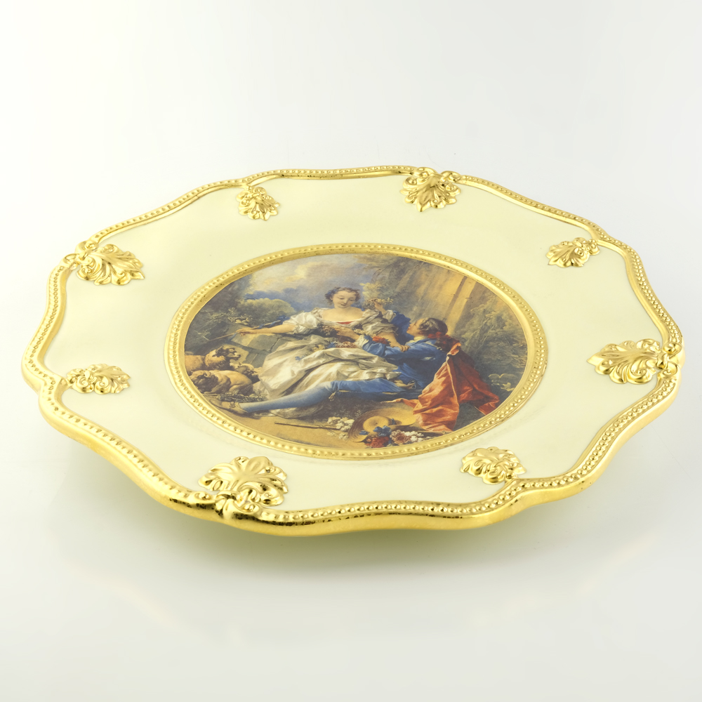 BAROQUE Piatto con decorazione dia.31 cm, ceramica, color crema, decor oro