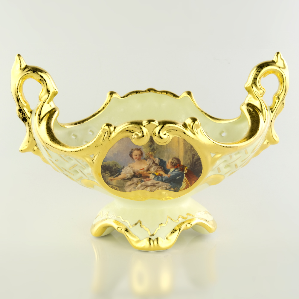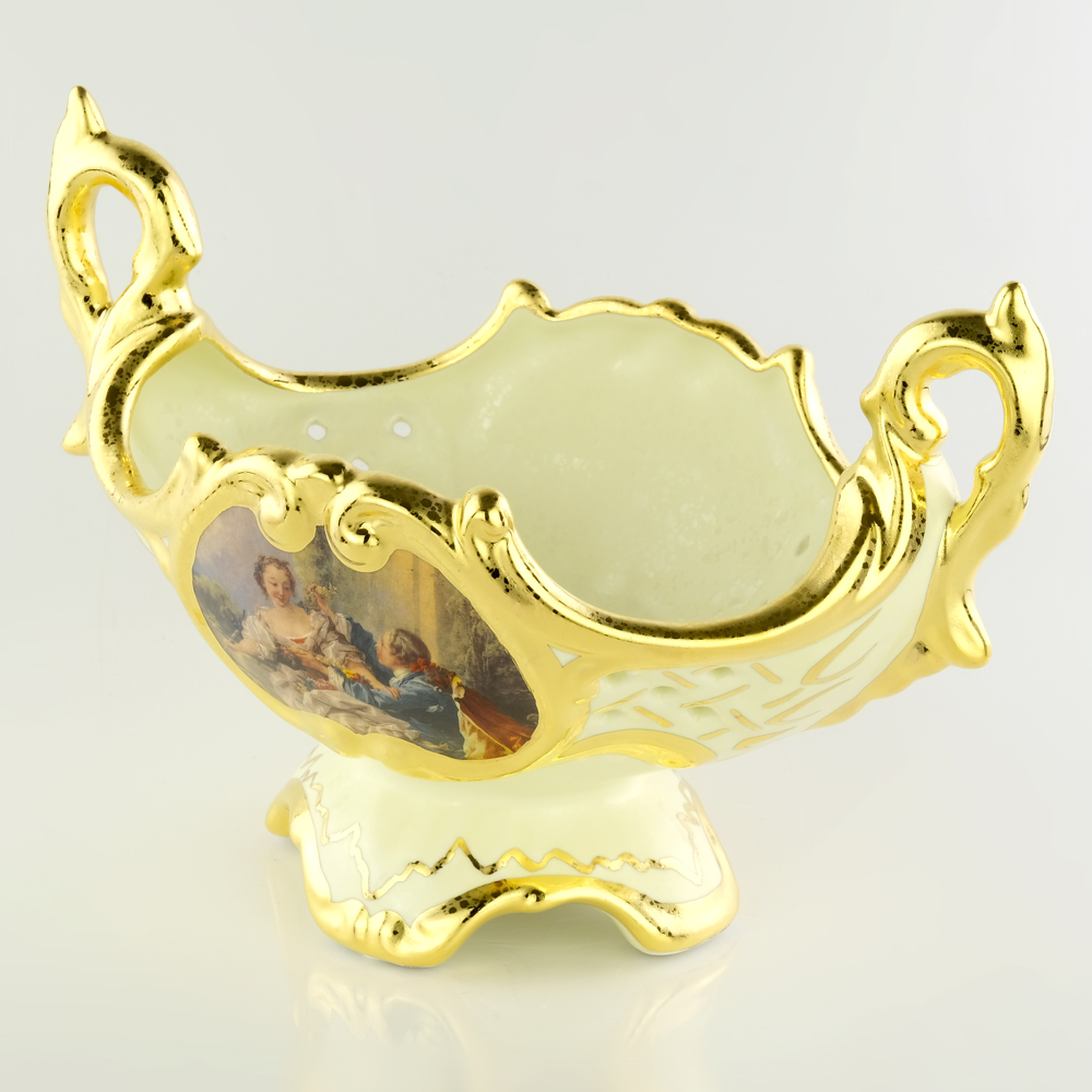 BAROQUE Vaso da tavolo 28x16x18 cm, ceramica, color crema, decor oro