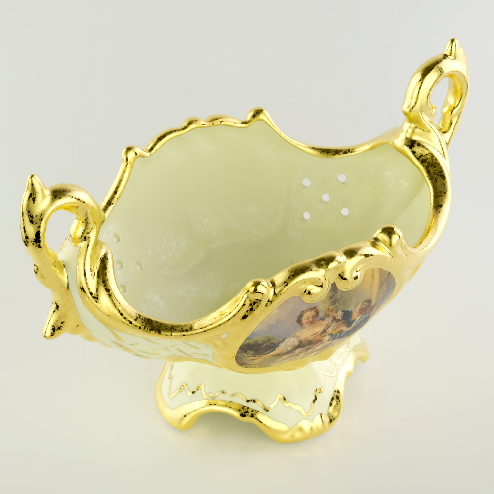 BAROQUE Piatto su una gamba 41x32xh16 cm., ceramica, Colore Crema, decorazione oro