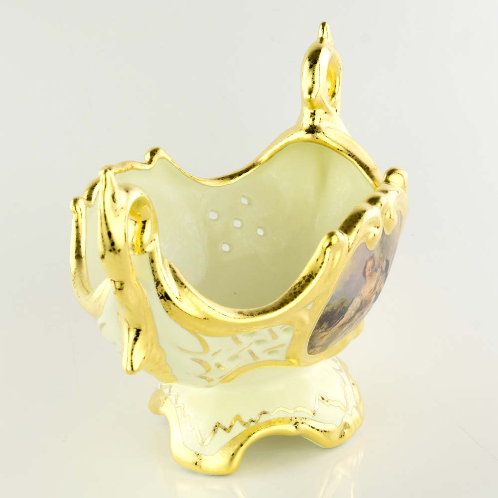 BAROQUE Forcella con decoro, ceramica / acciaio inox, color crema, decoro oro