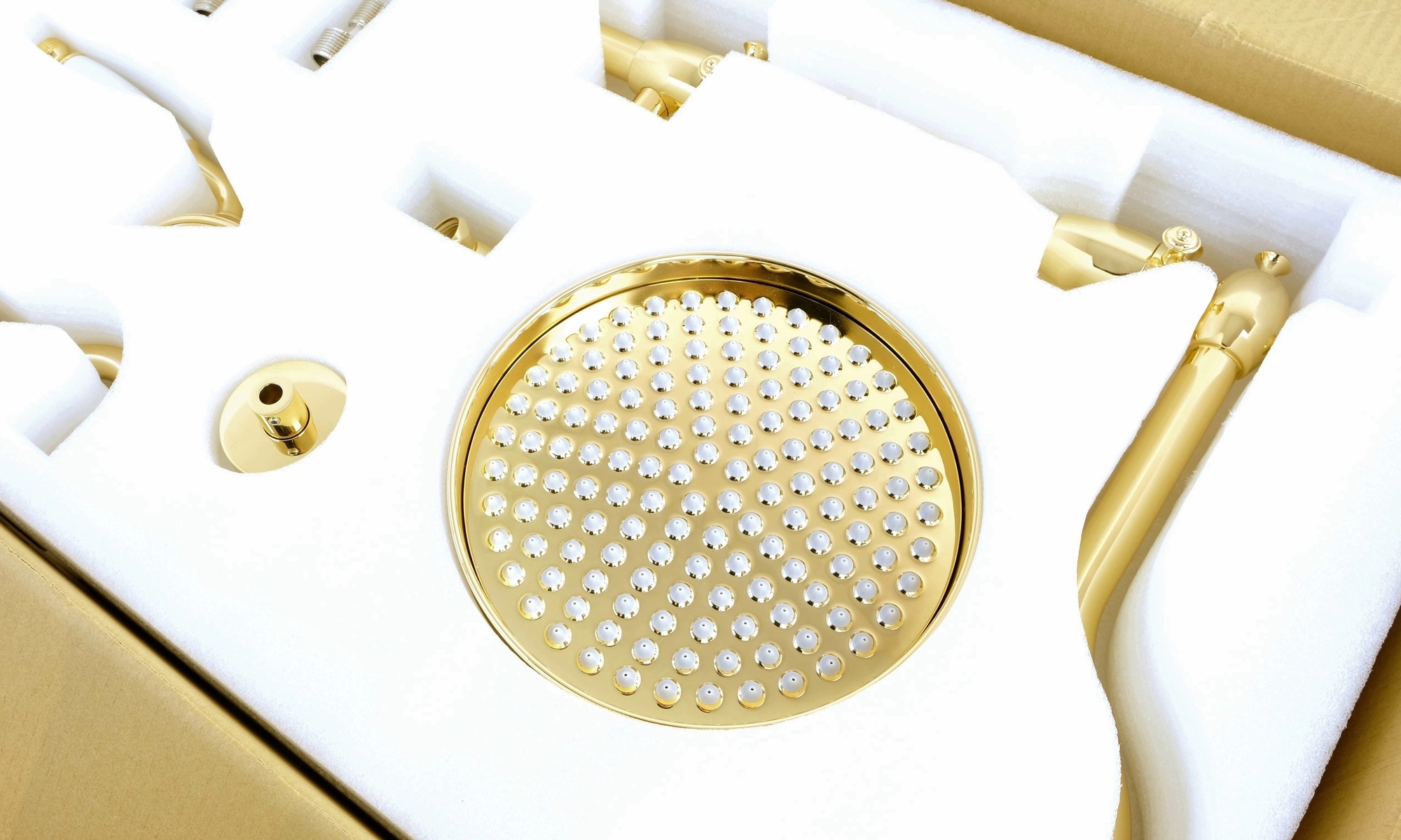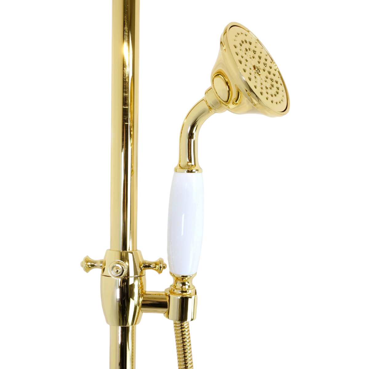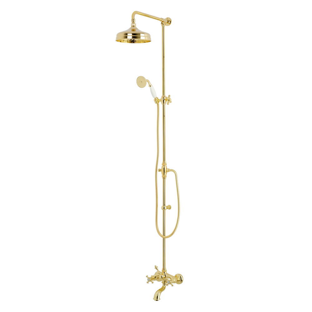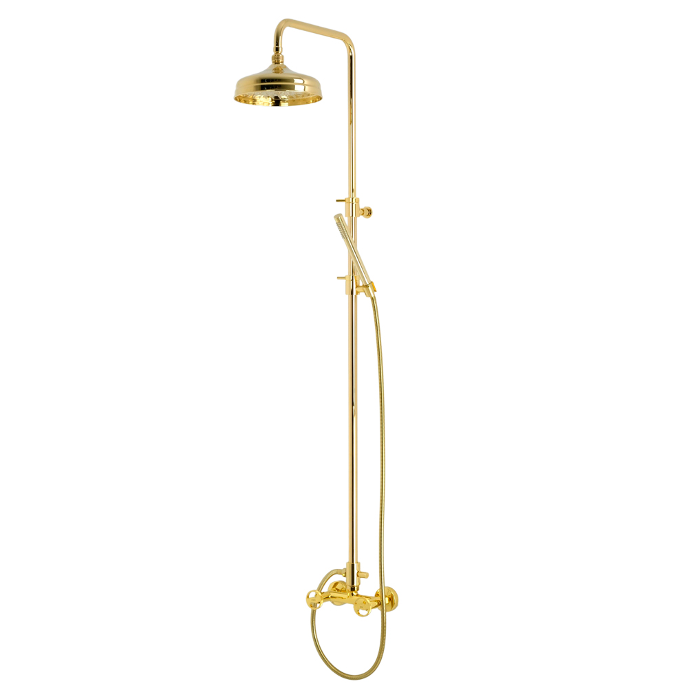 PRESTIGE Душевой настенный гарнитур (см-ль д/ванны/колонна/верхн.душ/шланг/ручной душ), золото