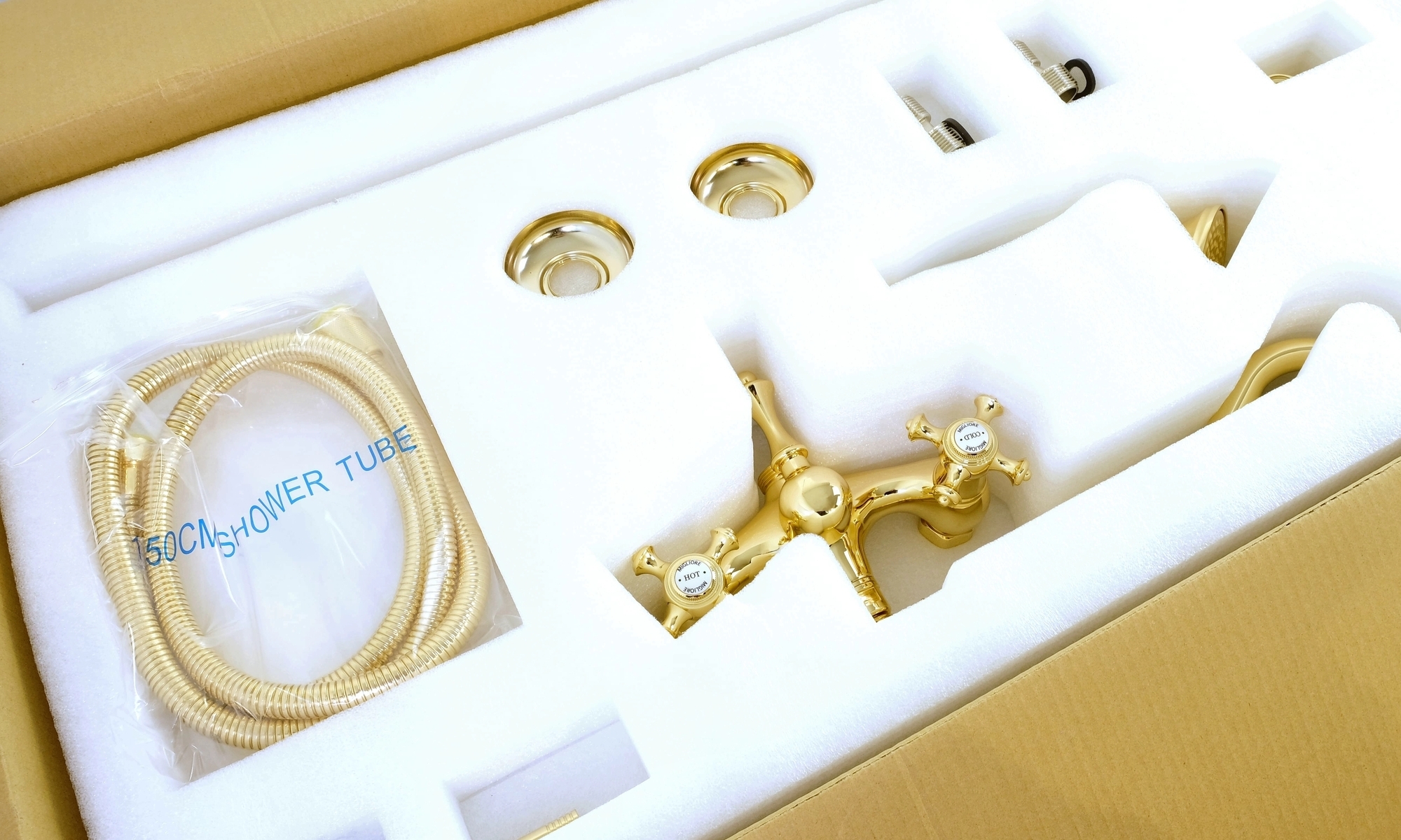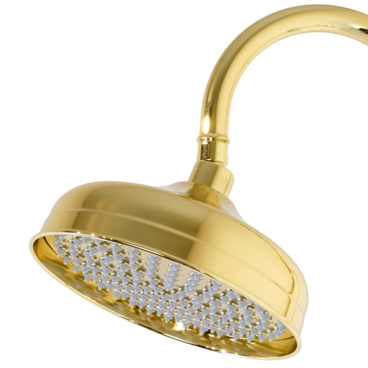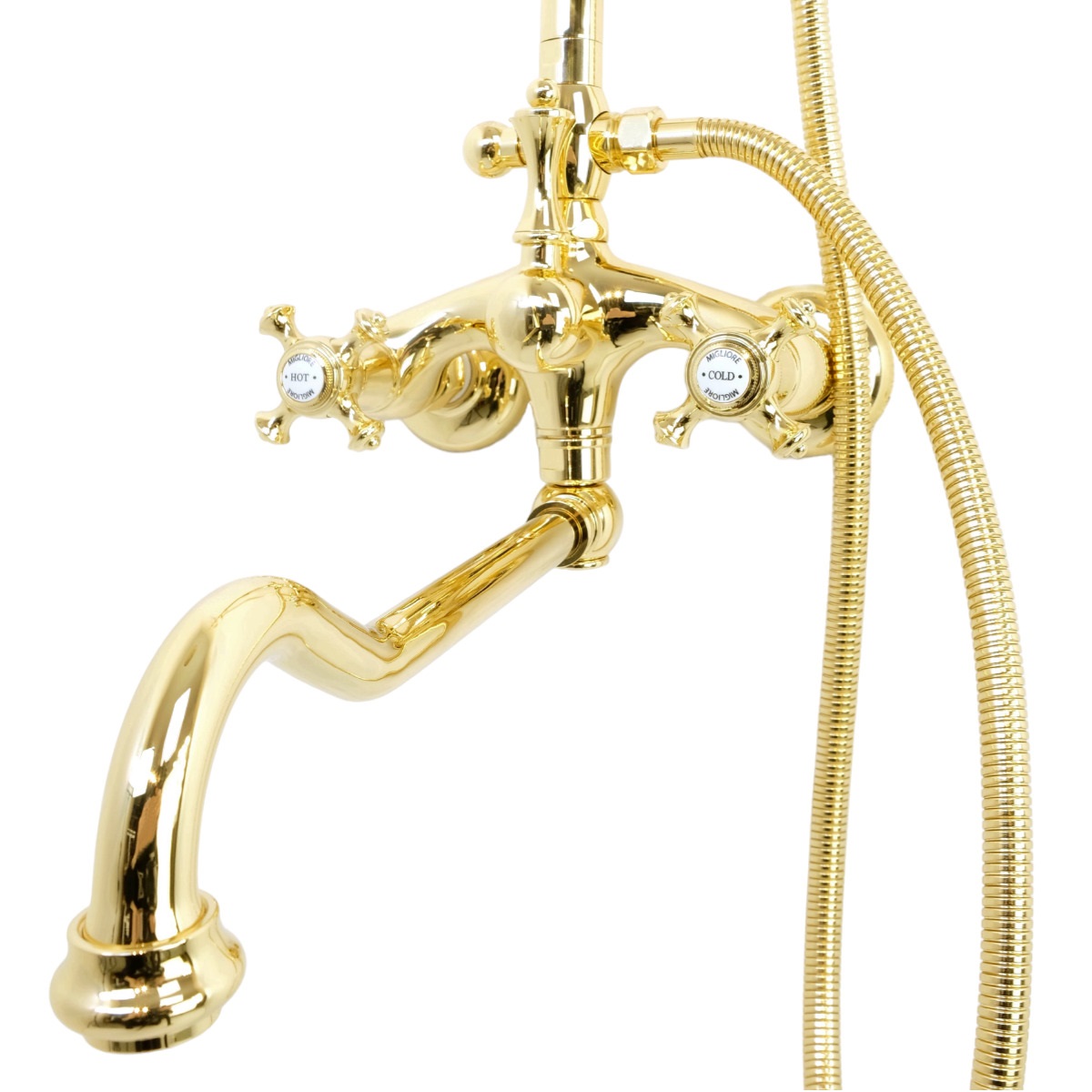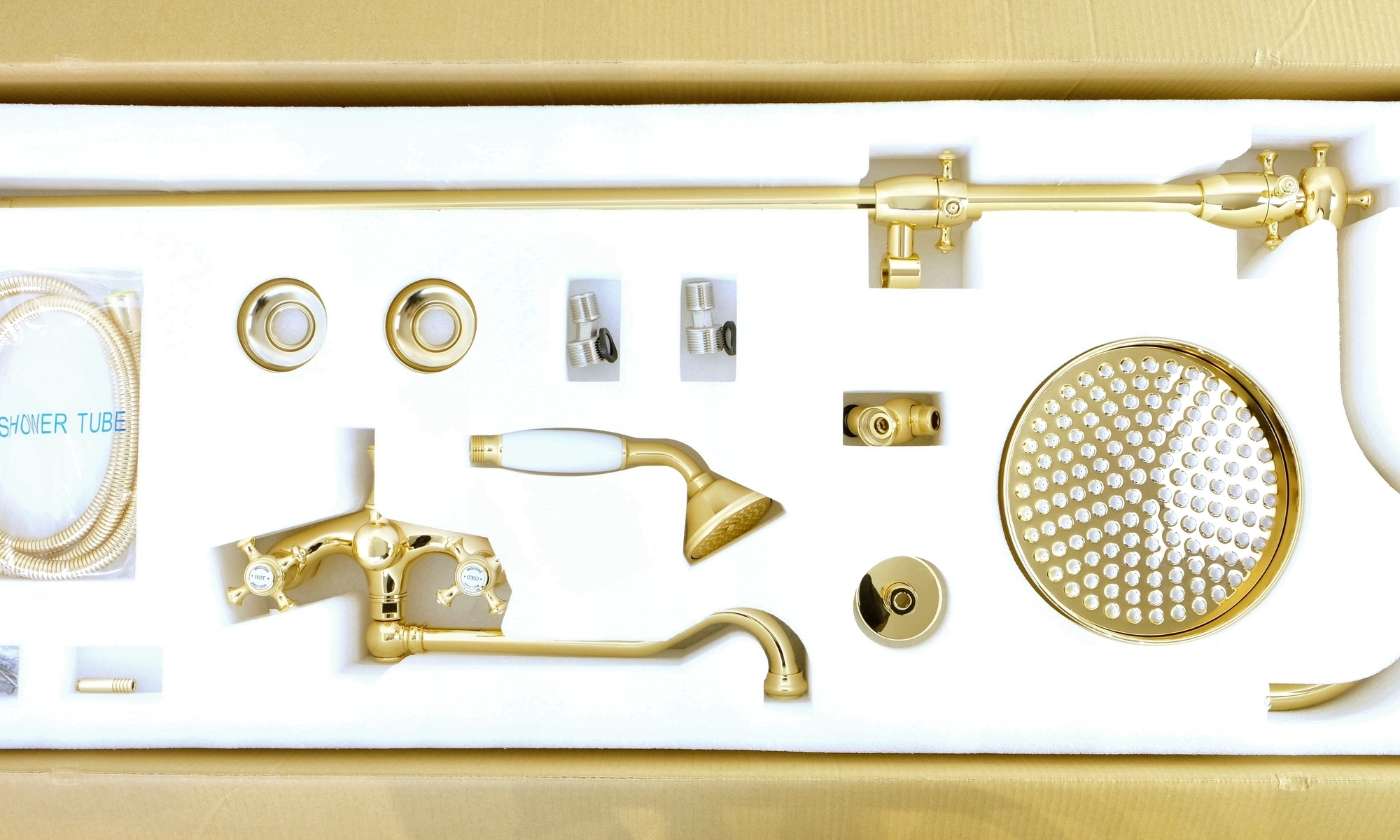 PRESTIGE Душевой настенный гарнитур (см-ль д/ванны/колонна/верхн.душ/шланг/ручной душ), золото