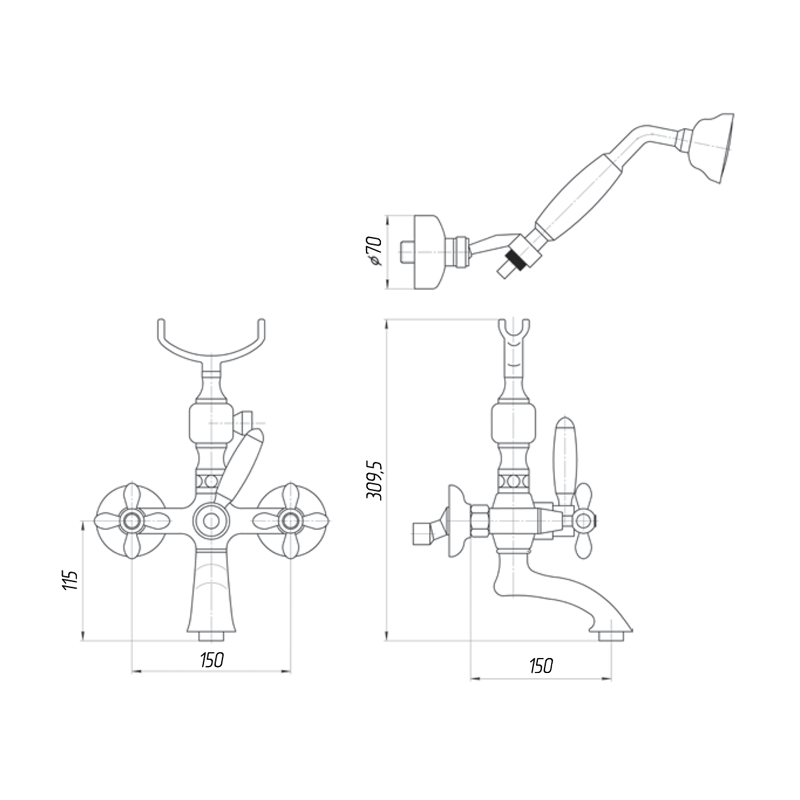 Gruppo vasca esterno con flessibile cm 150 e doccia duplex, Crystal