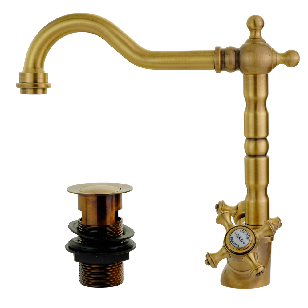 Смеситель для раковины “змейка”, Click-clack в комплекте